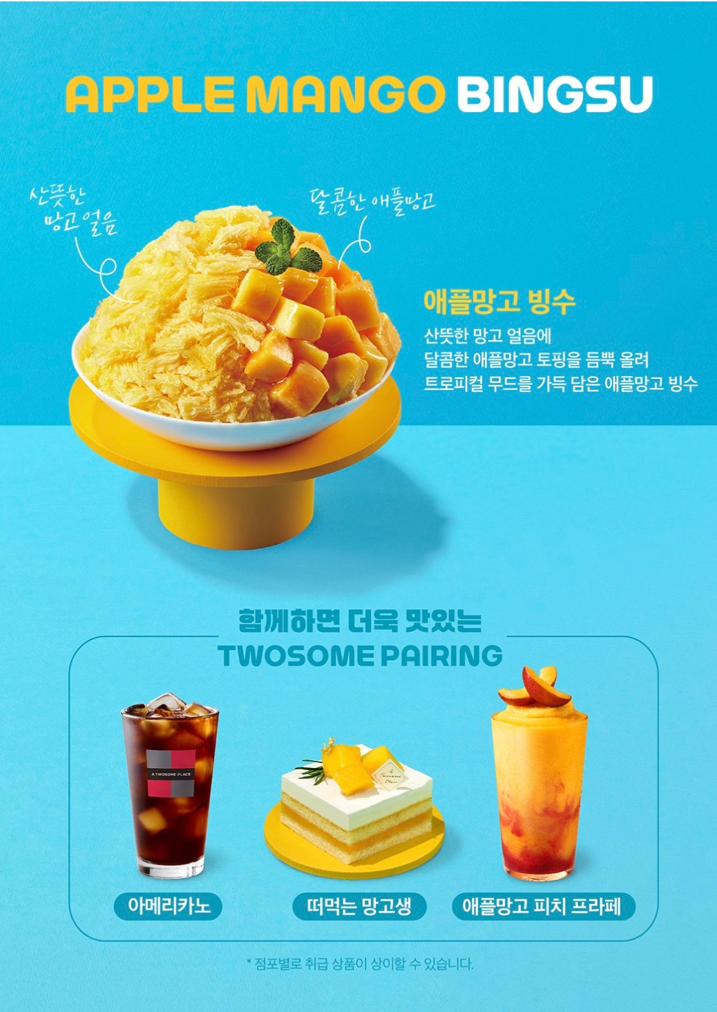지금 이 글을 쓰는 곳은 투썸플레이스 커피숍이다. 둘러보니 아이부터 어르신까지 다양한 연령층의 사람들이 있는데 유리문의 망고빙수 포스터에 시선이 멈췄다.