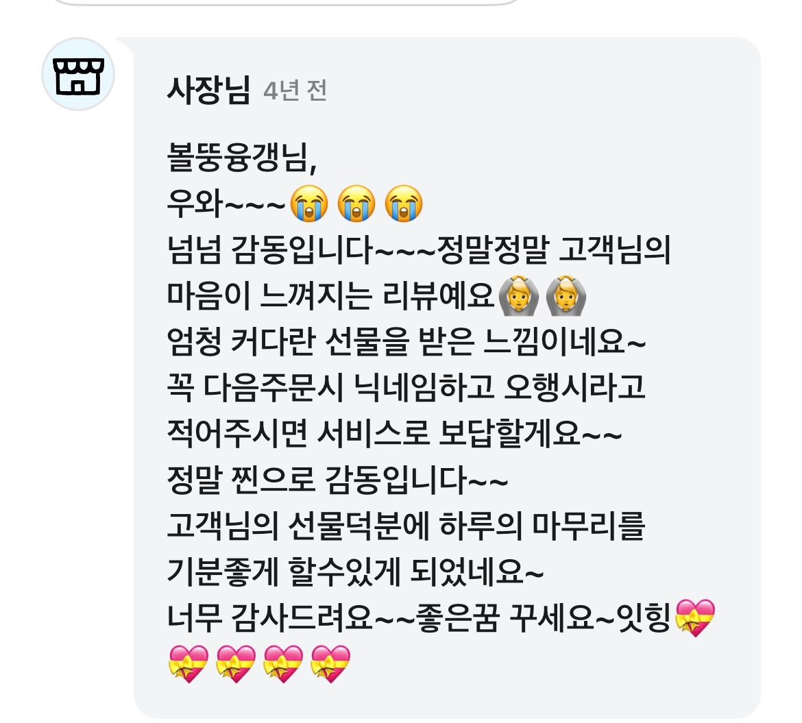 많은 리뷰리스트에서도 돋보일 뿐만 아니라 물건을 판매한 사장님들도 답변을 남겨 주신다.