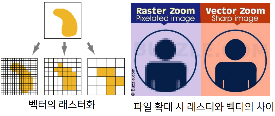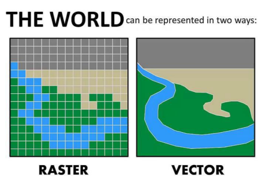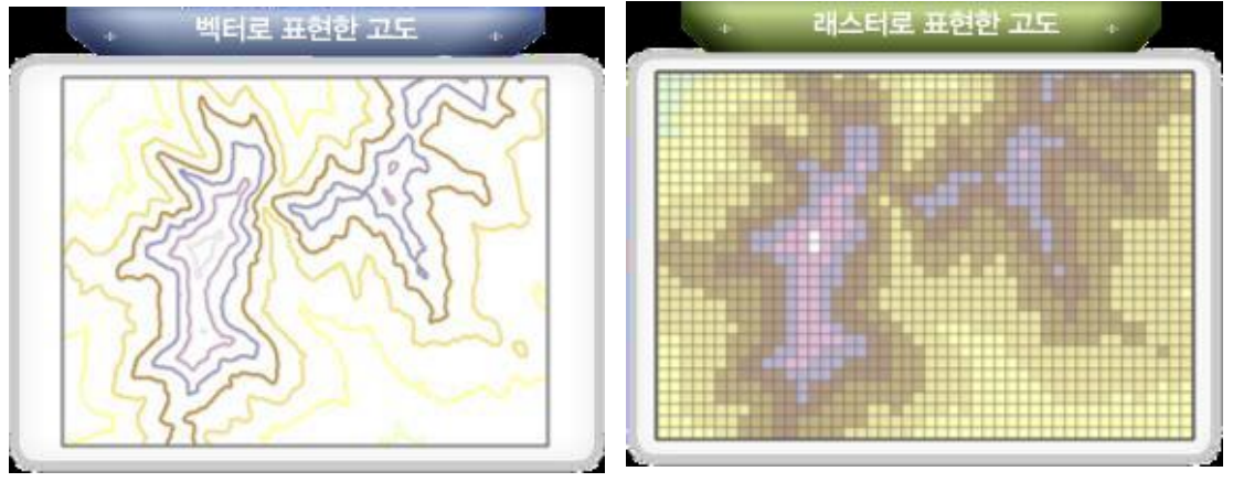 하나의 지도 안에서 두 유형의 데이터가 공존할 수 있으며, 도구를 사용하여 벡터 -> 래스터, 래스터 -> 벡터 변환 가능합니다.