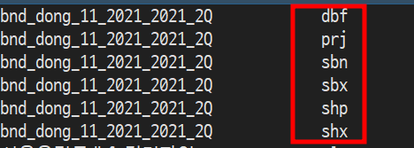 가장 중요한 확장자는 shp이지만, 아래와 같이 하나의 데이터를 사용하기 위해서는 shp 이외에 다양한 확장자 파일이 필요합니다. shp만 있으면 활용할 수 없습니다.