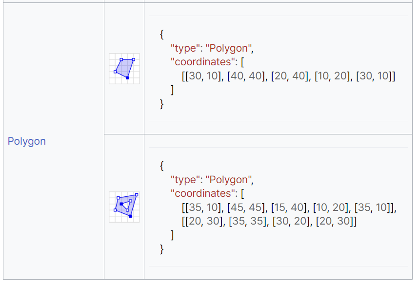 - 면(Area): 선으로 둘러싸인 영역을 나타내며, 폴리곤이라고도 불립니다. 면은 점과 선을 이용하여 생성되는 폐쇄된 도형으로, 지리적인 영역을 나타냅니다. 주택 구역, 도시 경계, 공원 등과 같은 지리적인 영역을 면으로 표현할 수 있습니다.