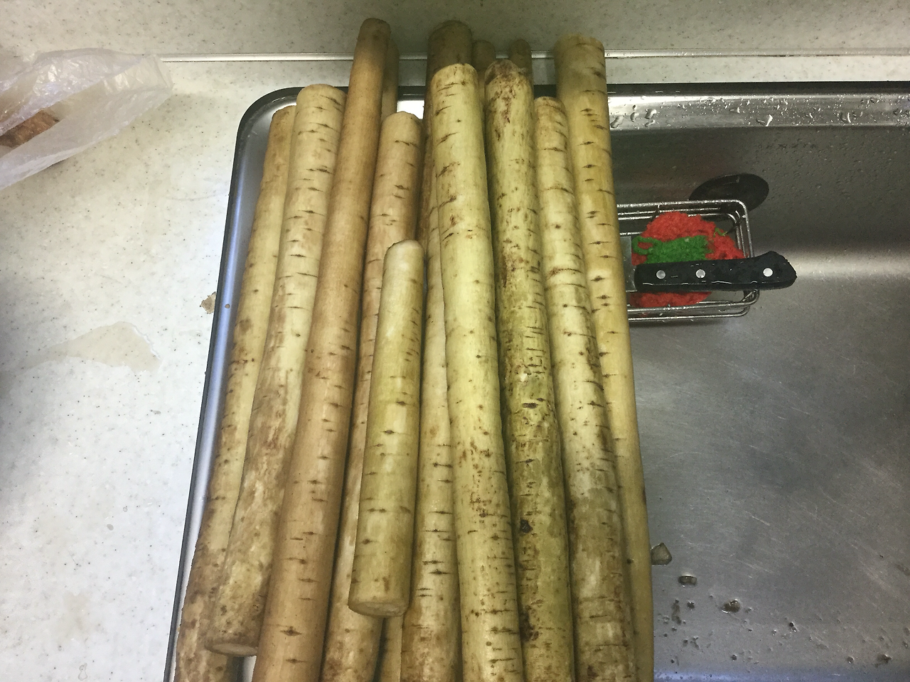 1. 우엉을 씻는다. 수세미를 이용한다.
