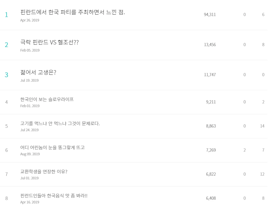 처음 핀란드에 왔을 때 2019년의 목표 중 하나가 브런치 작가가 되는 것이었다. 핀란드에 도착하기 전 2~3번 브런치 작가 신청을 했지만 번번이 떨어졌다. 어려웠던 목표였기에 핀란드에 와서 꾸준히 글을 쓰다 보면 언젠가 작가가 될 것이라고 생각하고 목표로 설정했다. 핀란드에 오니 글을 쓰고 싶은 거리들이 굉장히 많았고, 페이스북과 블로그에 쓰는 글에 호응이 생각보다 좋았다. 처음 와서 거의 매일 글을 썼고, 댓글들로 사람들과 소통하는 게 재미있었다. 그렇게 쌓인 글들로 다시 브런치 작가를 신청했다. 그렇게 브런치 작가에 선정이 되었다. 1년의 목표로 막연히 삼았던 것이 2주도 안돼서 이루어졌다. 생각보다 쉽게 이뤄진 목표에 기쁘면서 한편으로는 얼떨떨했다. 그렇게 브런치 작가가 되고, 글을 참 열심히 썼다. 6개월 정도 글을 열심히 썼다. 꽤나 좋은 성과들이 나왔고, 그중 하나의 글은 다음 메인에 노출되어 9만 명이 넘는 사람이 내 글을 보았다.