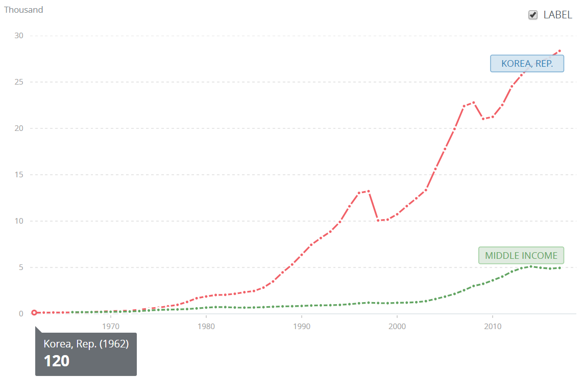 1962년에 120$였던 개인당 연간 소득은 2018년 30,000$를 넘어섰다. 우리 부모님, 베이비 붐 세대가 태어나던 시절과 지금 우리가 살고 있는 세상은 같은 나라라고 보는 게 어색하다. 아예 다른 나라라고 보는 것이 더 합당하다.