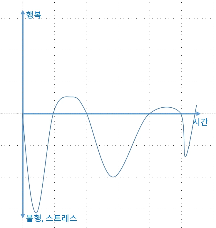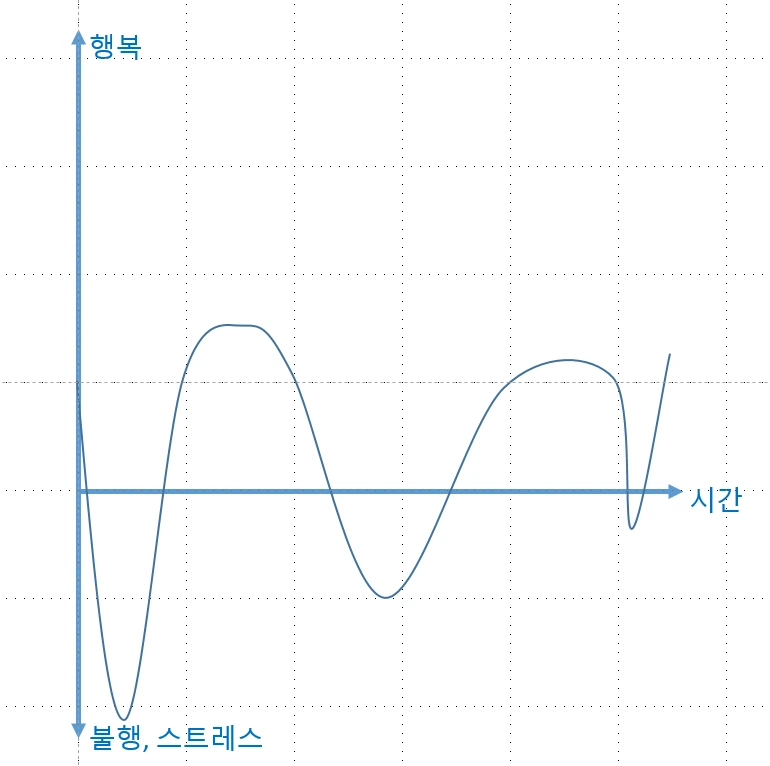 행복의 그래프를 그려, x축을 시간, y축을 행복의 양으로 놓고 y축의 +를 행복, y축의 -를 불행이라고 생각해보자.