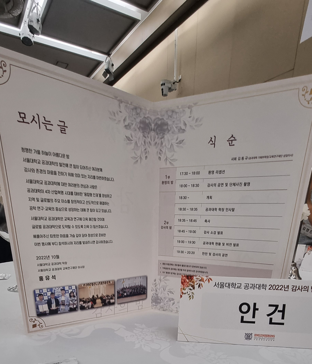 가슴이 뛰고 신나는 일을 하면 생각지도 못한 곳에서 선물을 받기도 한다. 기부를 하고 나니 아래의 '공과대학 2022년 감사의 밤'에 초대받았다. 수십억을 기부하신 회장님들과 함께 같은 장소에서 식사를 하는 영광을 누렸다. 그분들이 지난 수십 년간 아무것도 없던 우리나라를 세계 GDP 11위권에 달하는 나라로 만든 주역들이었다. 그리고 그분들의 과거는 나의 지금과 크게 다르지 않음을 깨달았다. 그저 자신이 생각하기에 가치 있는 꿈을 꾸고, 구체적인 계획을 세우며, 동료들을 모아, 신나게 그 일을 해나갔을 뿐이었다. 그들의 삶의 무게에 감탄했고, 나도 충분히 그렇게 할 수 있으리란 자신감이 생겼다. 내가 원하는 삶의 방향에 조금 더 확신이 생겼다.