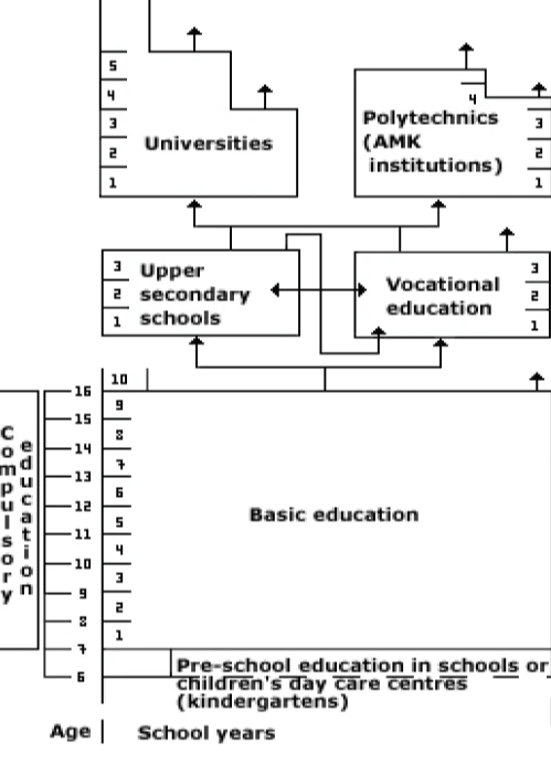 핀란드에서는 대학을 가는 비율이 약 45% 정도가 된다고 한다. 또한 고등학교 진학 비율 자체도 높지 않다. 중학교 졸업 이후 고등학교와 전문계고등학교로 진로가 나뉘고, 이어서 대학과 전문대학으로 진로가 나뉜다.