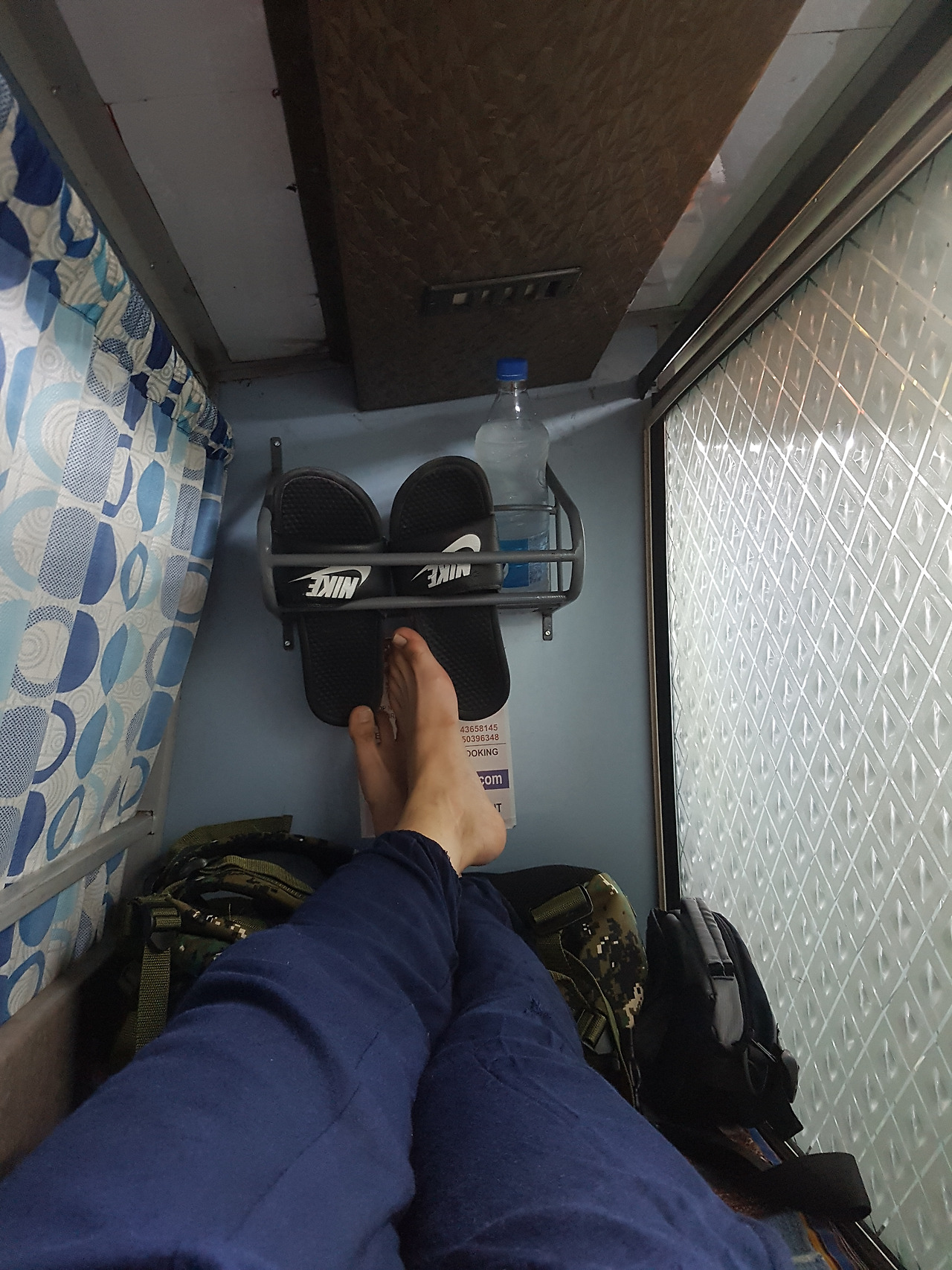 그러나 나의 기대와는 달리 몇 초마다 길게 울려대는 도로 위 어마어마한 인도식 클랙션(자동차 빠방이) 소리를 들으며 쿠션이라고는 전혀 없는 곳에 누워 이동을 했다. 어디서든 누우면 바로 잠을 잘 수 있다고 생각했으나 착각이었다. 결국 자정이 넘어 지쳐서 잠이 들었지만 가는 동안 여러 번 자고 깨고를 무한 반복했다.