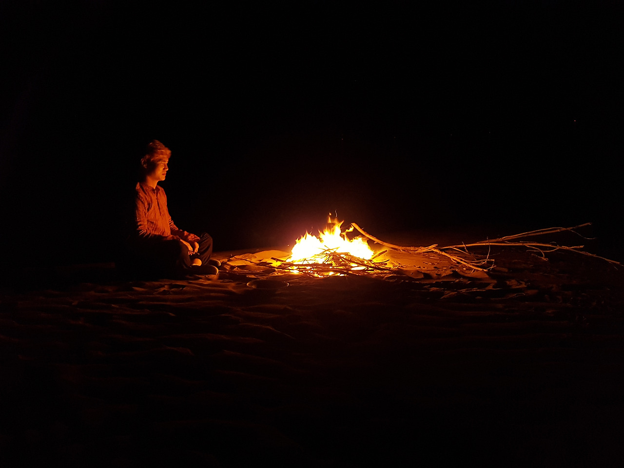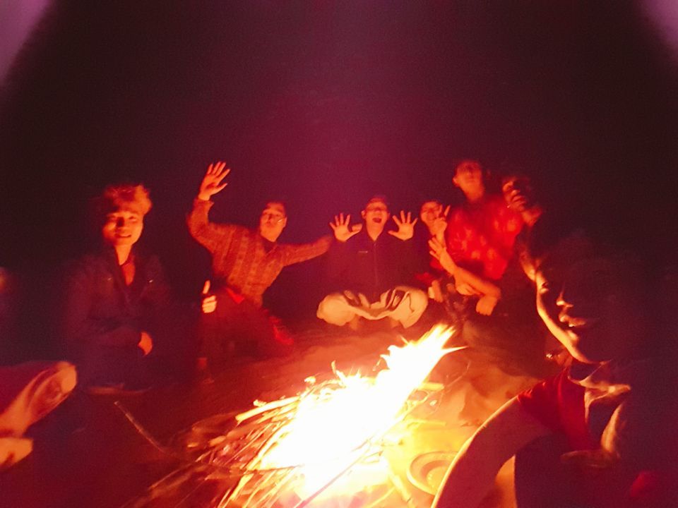 '내가 꿈꾸던 것들이 지금 이 순간 내 앞에서 실제로 일어나고 있다니' 믿을 수가 없었다. 이게 뭐라고, 맞은편에서 불어오는 모래바람과 함께 모닥불 외에는 사방이 어두컴컴했지만 그저 좋았다. 시간이 지나 모닥불 안에 있던 치킨과 감자를 꺼내 먹는 순간