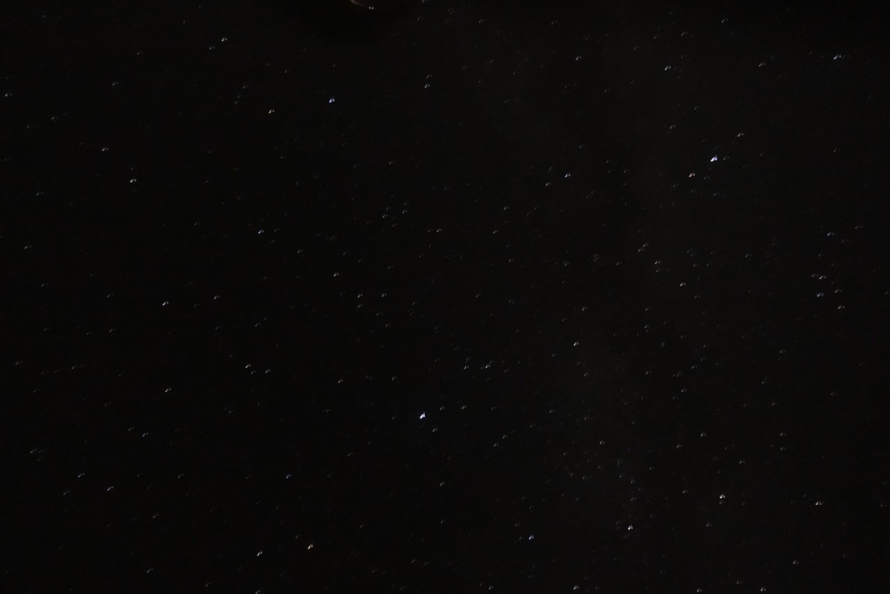 잠시 후 구름이 하늘 위를 비켜가기 시작했고 동시에 밝은 달도 가려주었다. 그러면서 은하수와 별자리는 더 선명하게 보이기 시작했으며 나는 순간적으로 낙하하는 별똥별을 봤다.