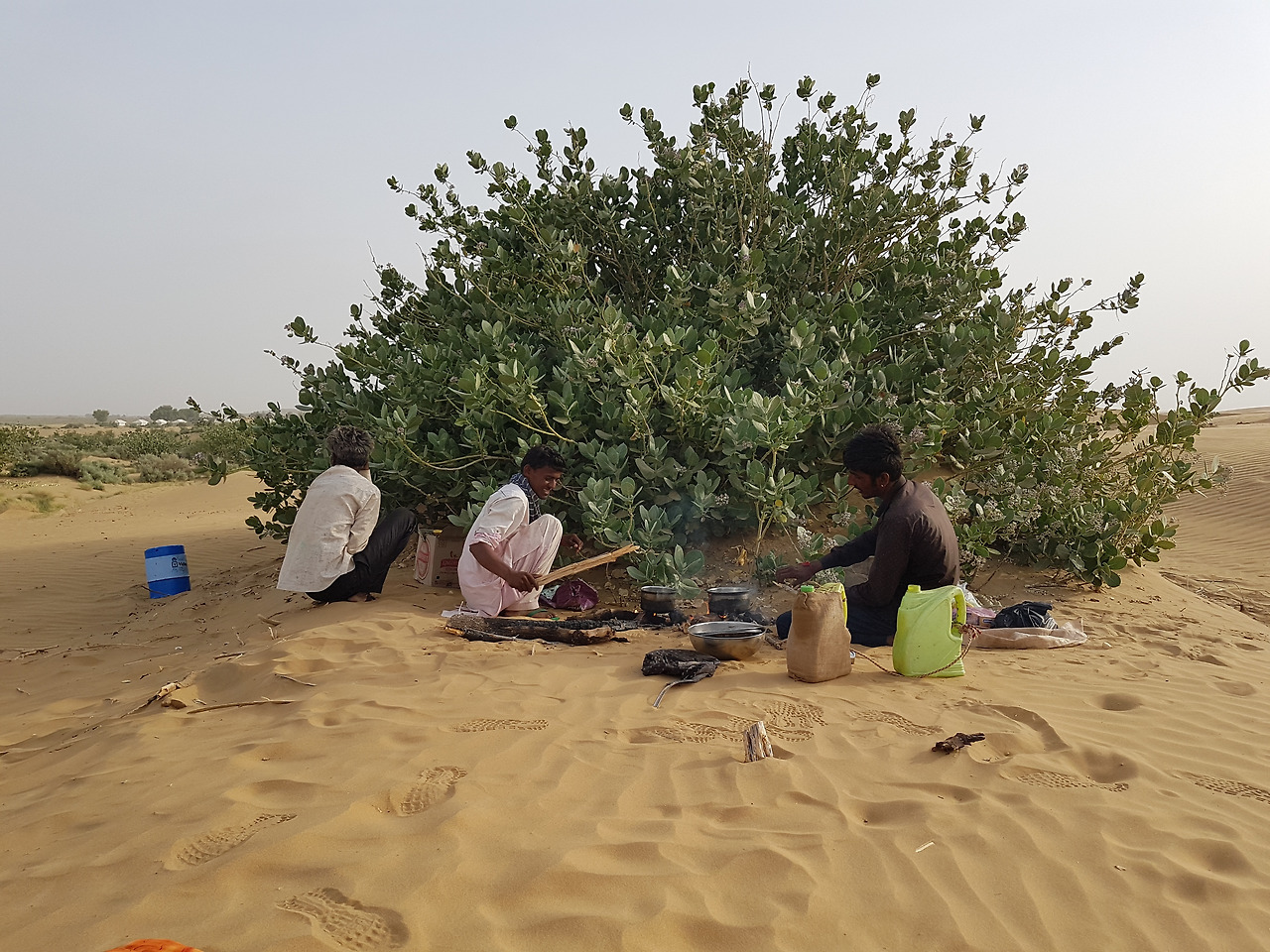 갑자기 너무 배가 고프다. 낙타몰이꾼들이 정성스레 준비한 인도식 식사인 짜파티, 밥, 카레를 받아 들었다.