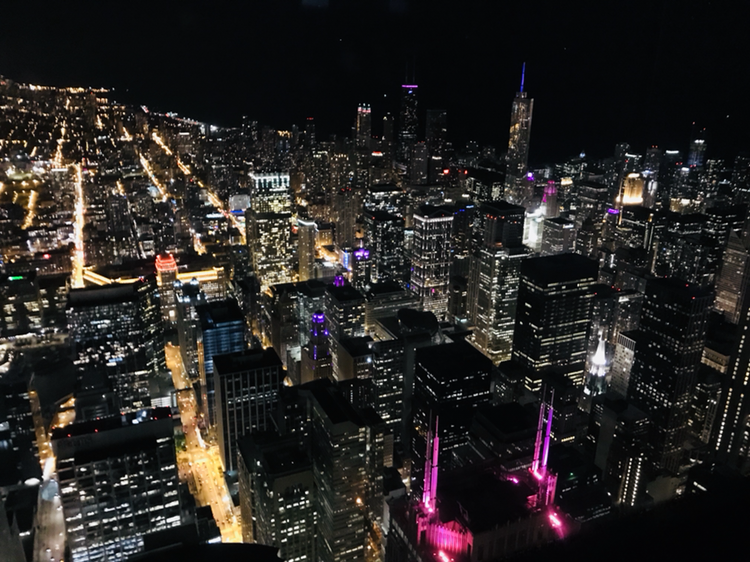 한때 세계에서 제일 높았던 건물이다. 시카고와 윌리스 타워에 관한 설명이 있는 지하를 통과하면 전망대로 이어지는 엘리베이터를 탈 수 있다. 시카고의 모든 것을 볼 수 있다. 해가 질 때 쯤 가는 것이 제일 좋다. 노을과 석양, 그리고 시카고의 아경까지 모든 것을 볼 수 있다.