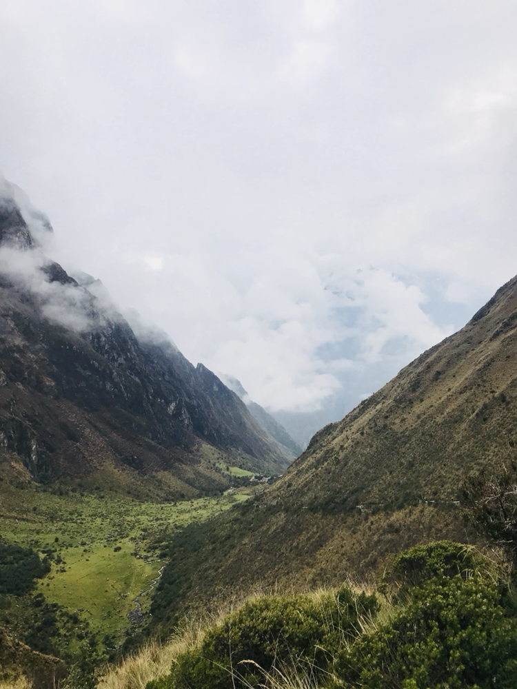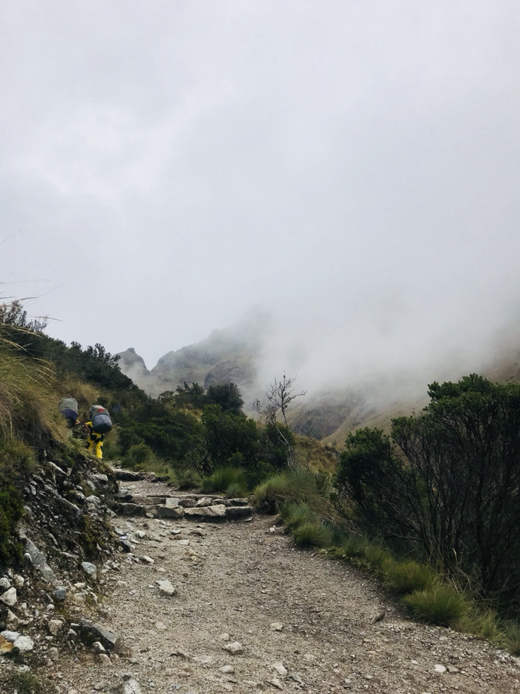 앞사람의 발을 보며 생각 없이 걷다 보면 어느새 잉카 트레일의 가장 높은 지점, “죽은 여인의 골짜기”에 도착한다. 해발 4215M인 이 지점에서는 실제로 구름이 산의 한쪽에서 다른 쪽으로 넘어가는 모습이 보인다.