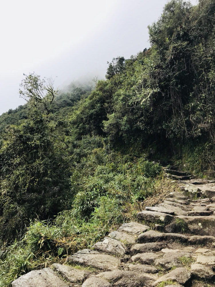 잉카 트레일의 아름다운 모습들을 편하게 볼 수 있었다. 이제는 계속 내리막이기 때문이다. 한쪽은 산, 다른 한쪽은 낭떠러지인 계단이 계속해서 이어졌다. 내리막이 오르막보다 힘들다는 사실을 깨달은 하루였다.