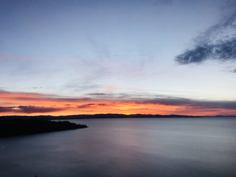 섬의 전망대에 올라가면 섬과 티티카카 호수를 보다 잘 조망할 수 있다. 전망대에서는 티티카카 호수 너머 눈 덮인 봉우리들까지 모두 보인다. 잔잔한 수면이 물로 만든 일본 선 정원 같다. 바람이 불 때마다 반짝거리는 빛들 때문에 푸른 밤하늘 같기도 하다. 이 조용한 섬에서 일박을 한다면 노을을 바라보며 저녁식사를 할 수 있다. 인터넷도 잘 안 되고 와이파이도 약하기에 정말 속세와 단절된 세상이다. 느긋해 지기 좋은 섬이다.