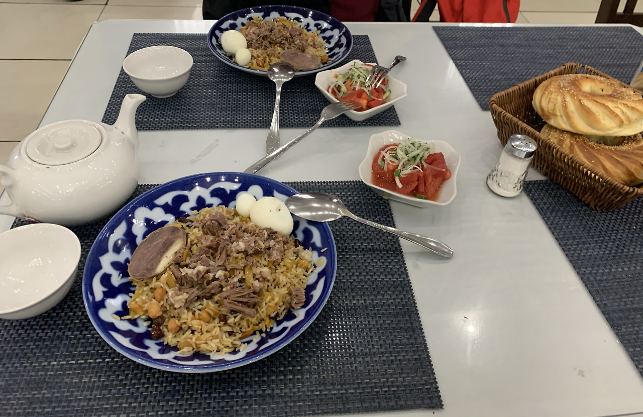 중동에서는 필라프, 중앙아시아에서는 플로프라고 알려져 있는 볶음밥 요리는 타슈켄트를 방문한 이라면 반드시 먹어야 하는 음식이다. 플로프는 바로 이곳 Plov Center에서 먹어야 한다. 고기 기름, 양고기, 소고기, 말 소세지, 메추리알, 병아리콩, 삶은 계란, 건포도와 향신료의 조합은 상상 이상이었다. 단맛과 짠맛, 고소함, 고기 맛 모든 맛을 느낄 수 있었다. 가격도 충격이었다. 두 명이서 배부르게 볶음밥과 샐러드, 빵, 홍차를 마셨는데 약 7000원 정도였다. 플로르는 사랑이었다. 결국 우리는 다음날 한번 더 가게 되었다. 나에게 있어 타슈켄트는 플로프로 시작하여 플로프로 끝났다.
