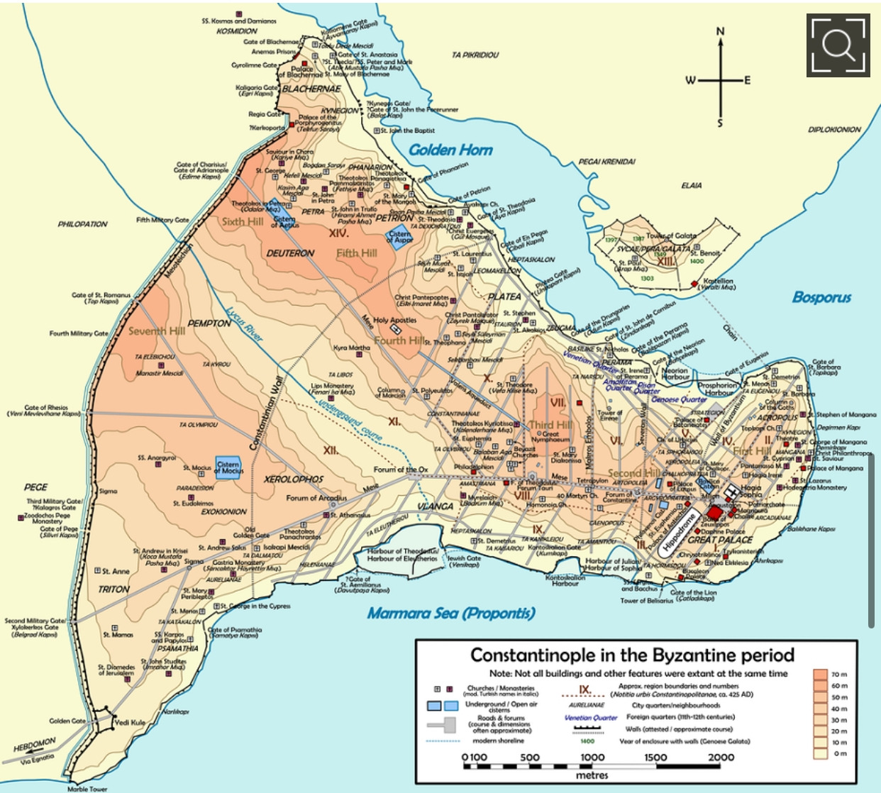 하지만 제국의 수도의 위용이 사라진 사라진 것은 아니다. 천년 간 제국을 보호한 테오도시우스 성벽은 아직도 그 자리를 지킨다. 3중 성벽으로 구성된 콘스탄티노플의 성벽은 1204년 제4차 십자군 원정과 1453년 메흐메트 2세의 콘스탄티노플 공방전 이외에는 한 번도 함락된 적이 없는 난공불락의 요새였다. 화약무기가 아닌 냉병기 시대에는 최강의 방어력을 자랑했다. 1453년의 함락 이후에도 그 원형을 유지하다가 19세기 도시의 확장과 함께 헐려나가기 시작했다.
