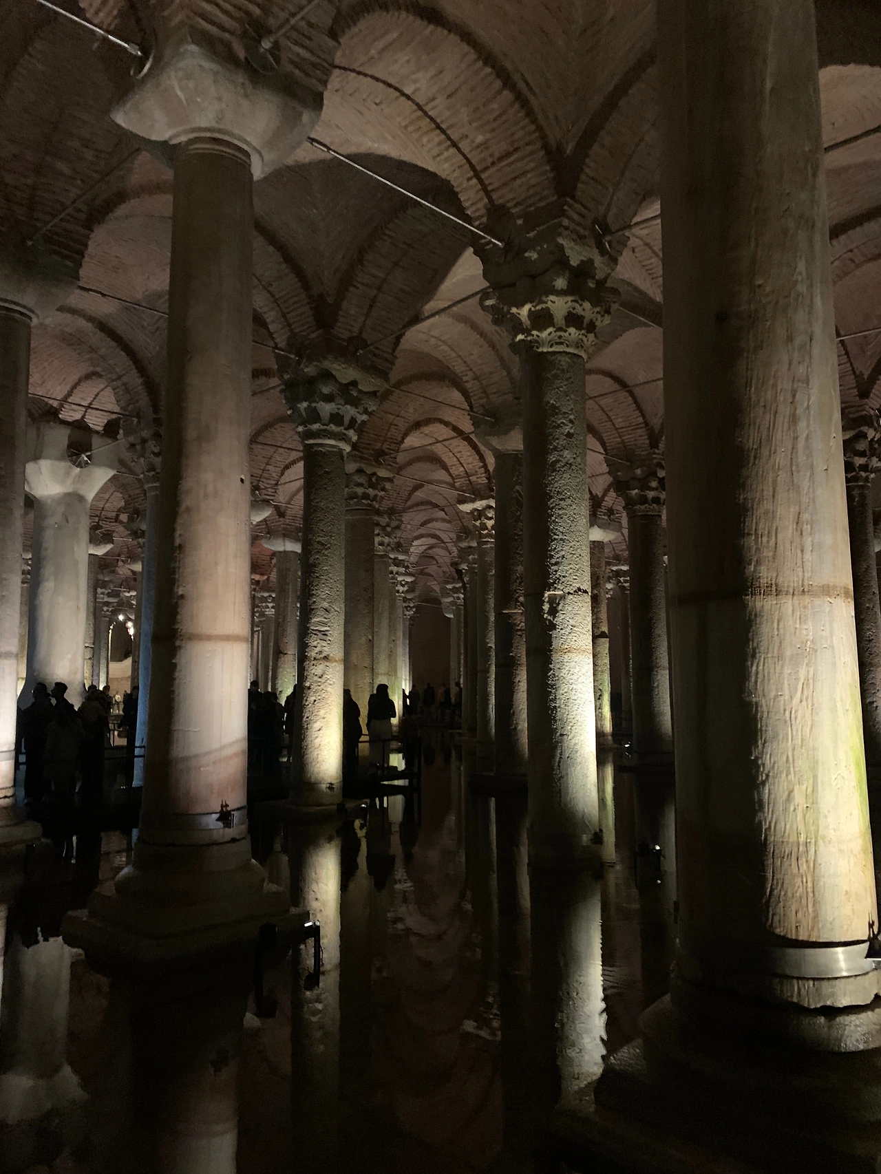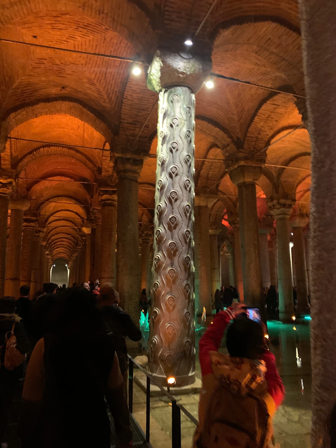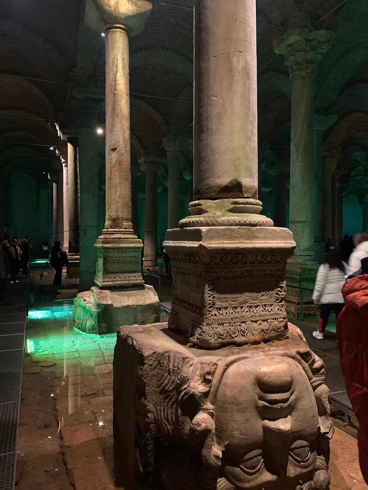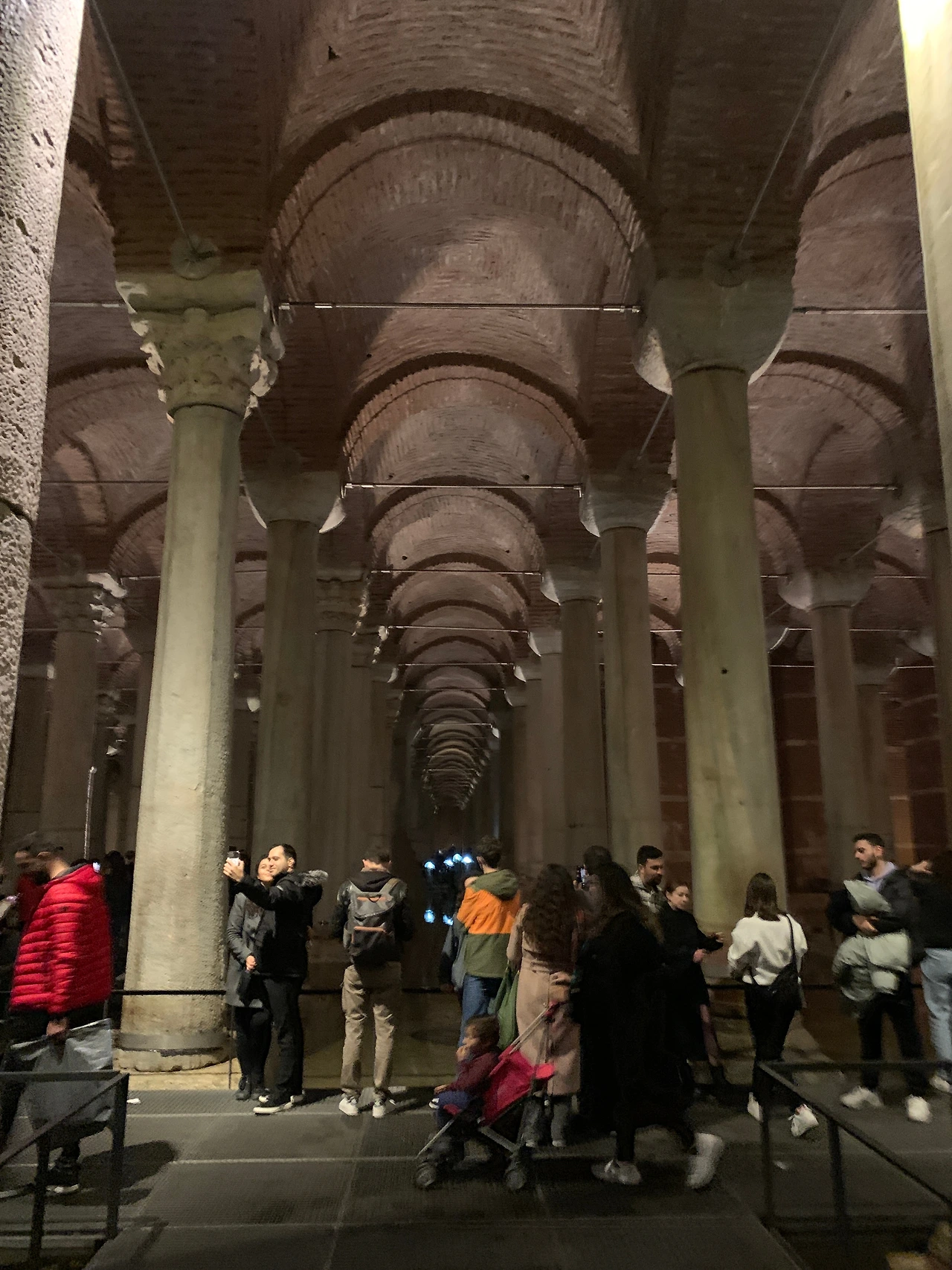 수도교는 이 지하저수조로 연결되었다고 한다. 이곳도 사실 특별한 것은 없다. 무수히 많은 아치들이 돔을 형성하고 있고, 조명이 조금 분위기를 자아낼 뿐이다. 하지만 1500년 전 이런 시설을 건설하고 대도시에 신선한 식수를 공급했다는 사실, 그리고 그 사실을 증명해 주는 장소가 주는 분위기는 특별하다. 대부분 비슷한 디자인의 기동이지만, 일부 기둥들은 그 형식이 다르다.