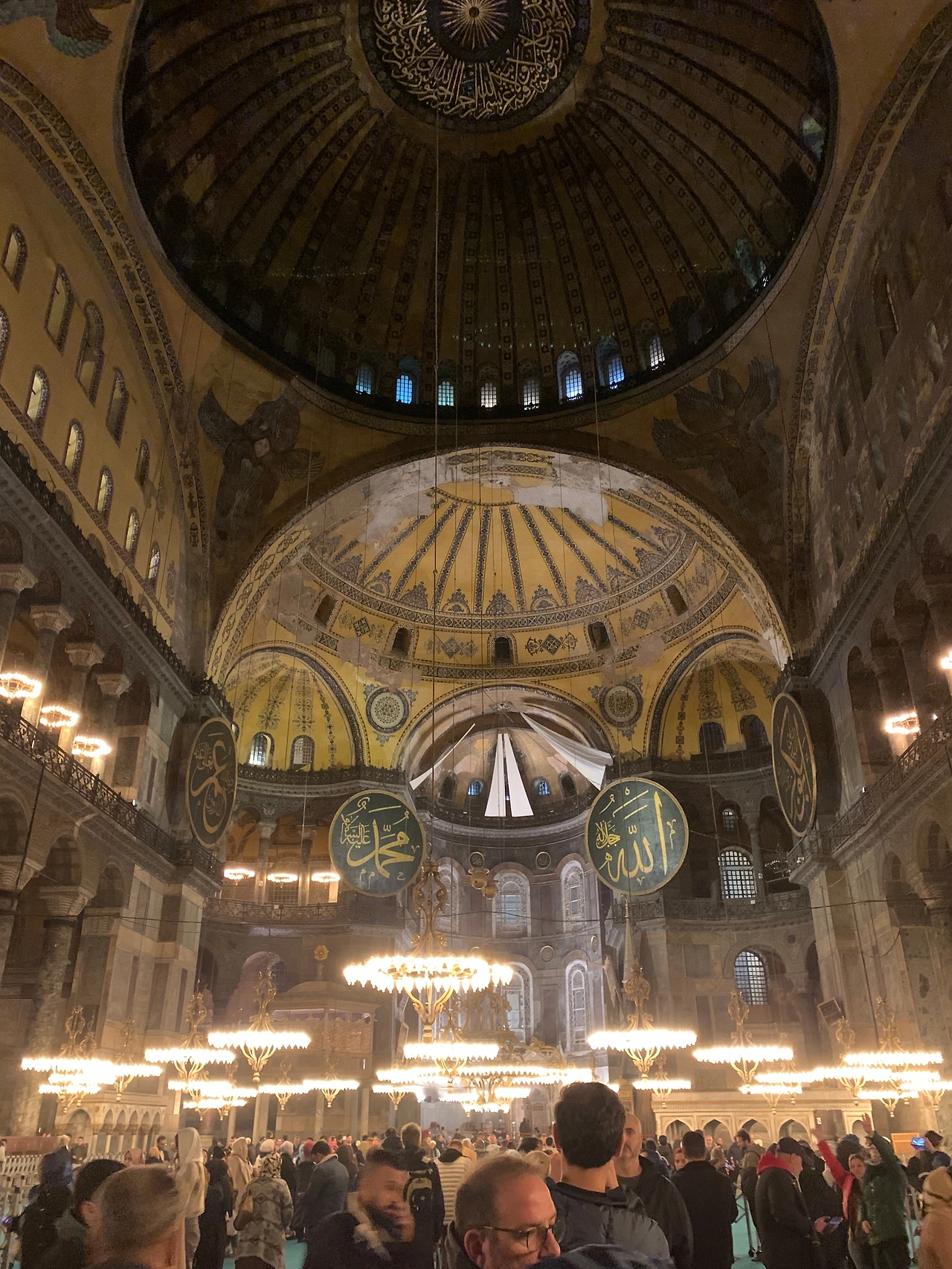 지하 저수조에서 나오면 세비야 대성당이 세워지기 전까지 세계에서 가장 큰 성당이었던 아야소피아의 웅장한 돔을 볼 수 있다. 지금 보아도 거대한 건축물인데, 과거 동로마 제국 시절, 그리고 오스만 제국 시절에는 얼마나 더 웅장해 보였을지 상상도 가지 않는다. 살짝 색이 바랜듯한 주황색 외벽은 그 세월을 증명해 주는 것 같다. 돔과 성당의 무게를 지탱하기 위해 나중에 추가된 외부 구조물 때문에 멀리서 보면 피라미드처럼 보이기도 한다.