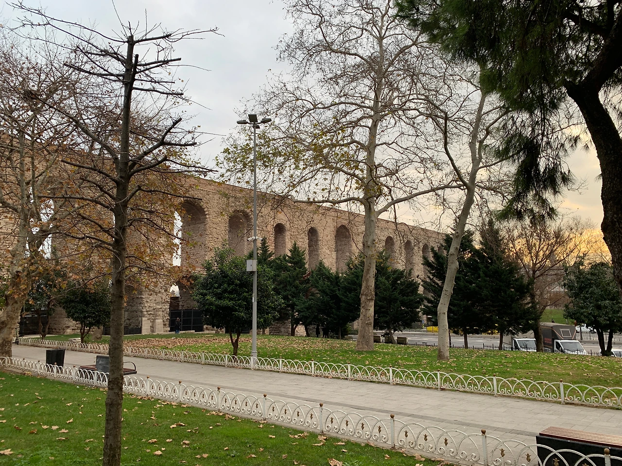 성벽을 통과하여 도시 중앙으로 가다 보면, 눈에 띄는 로마시대 건축물이 하나 더 있다. 콘스탄티노플에 식수를 공급한 발렌스 수도 교이다. 발렌스 수도교는 현재의 불가리아/루마니아 지방인 트리키아로부터 콘스탄티노플에 식수를 공급하기 위해 4세기경 세워진 수도 시스템의 일환이다. 전체 1KM 중 870M가 남아 있다고 한다. 트리키아의 신선한 물은 이 수도교를 지나 아야 소피아 근처 지하저수조로 향했다고 한다. 4세기에 지어진 이 수도 시스템은 오스만제국 말기까지 기능했다. 건축물 자체는 투박하지만 1500년 전에 이런 수도 시스템을 설치하고 운영했다는 사실 자체가 경이롭다. 화려한 신전이나 성당 건축물보다 이런 투박하지만 시대를 앞서간 기술력을 보여주는 건축물이 더 제국의 위대함을 증명해 주는 것 같다.