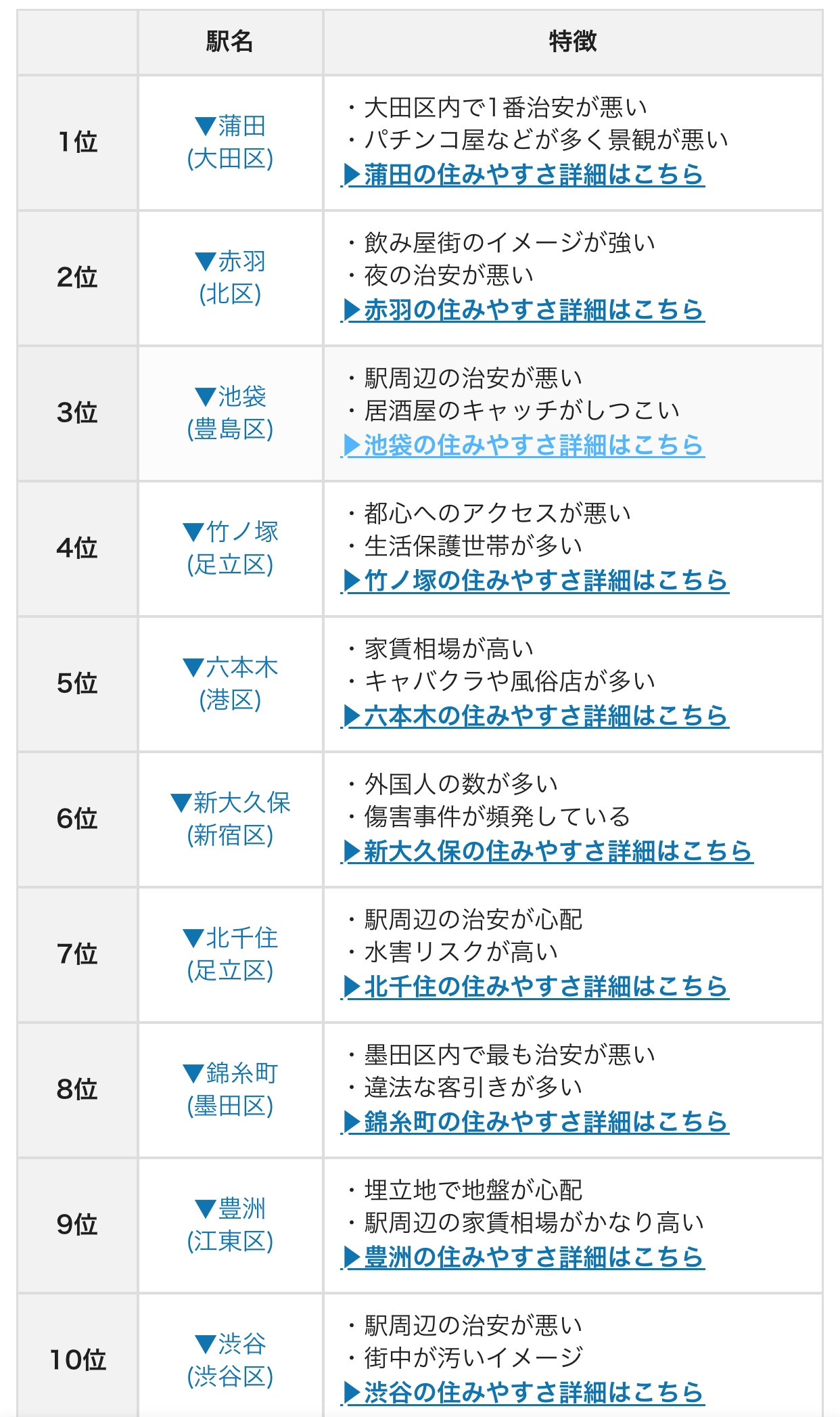 일본어를 유창하게 하고, 외모가 일본인과 비슷하다면 미국의 인종차별 정도의 차별은 없지만, 외국인을 향한 부정적인 시선은 존재한다. 도쿄에서 치안이 안 좋은 동네의 상위권은 모두 소위 “다문화 지역”이다. 중국인들이 많이 사는 이케부쿠로(池袋), 한국인들이 많이 사는 신오쿠보(新大久保), 중동계 이민자들이 많이 사는 와라비(蕨) 모두 일본인들의 눈에는 치안이 안 좋은 위험한 동네다.