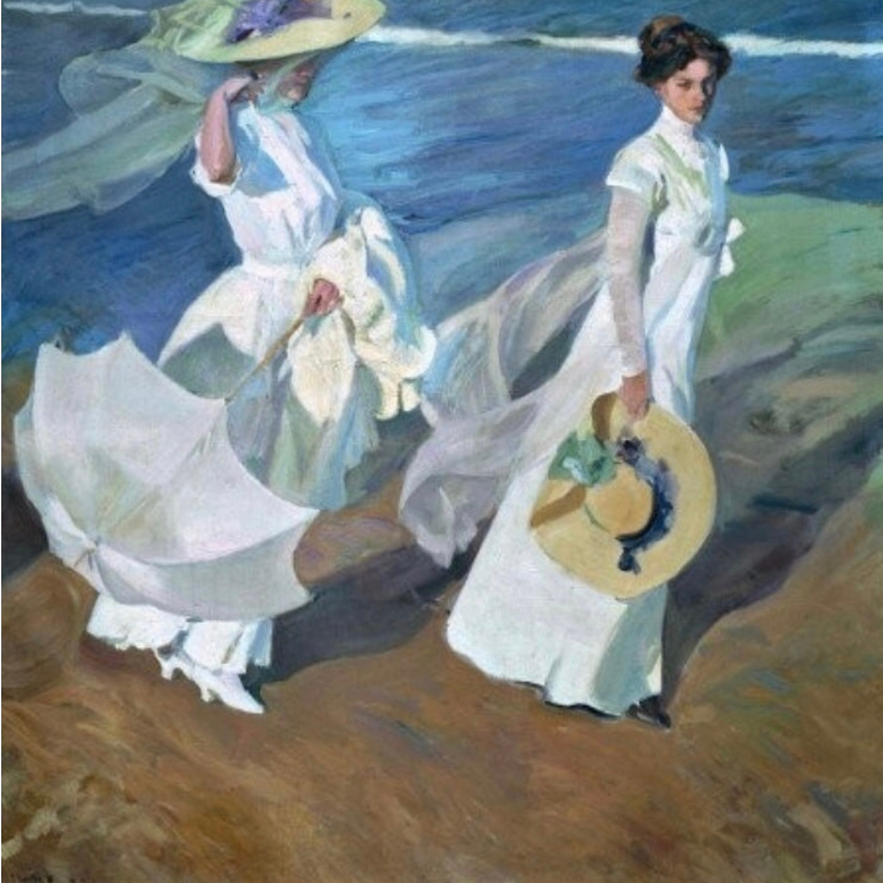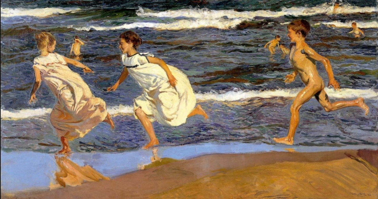 호아킨 소로야(1863-1923)는 스페인 출신의 인상파 화가이다. 소로야는 고향 스페인 발렌시아의 해변을 소재로 한 그림들을 많이 남겼는데 따뜻한 푸른색의 바다와 피사체를 비추는 햇살을 인상적으로 표현했다. 누군가 그의 블루를 ‘가장 따뜻한 블루‘라 명칭 하던데 푸른 바다의 역동적인 물결과 물에 투영된 햇살, 반짝이며 물에 비추이는 아이들의 몸의 움직임에서 휴양지의 여유로움과 흥겨움이 느껴진다. 고향 발렌시아 바다 앞에서 가장 뛰어나고 행복했던 찬란한 빛의 화가 호아킨 소로야. 활기로 충만한 햇빛 반짝이는 ‘가장 따뜻한 색, 블루’의 바다로 기억하는 화가다.