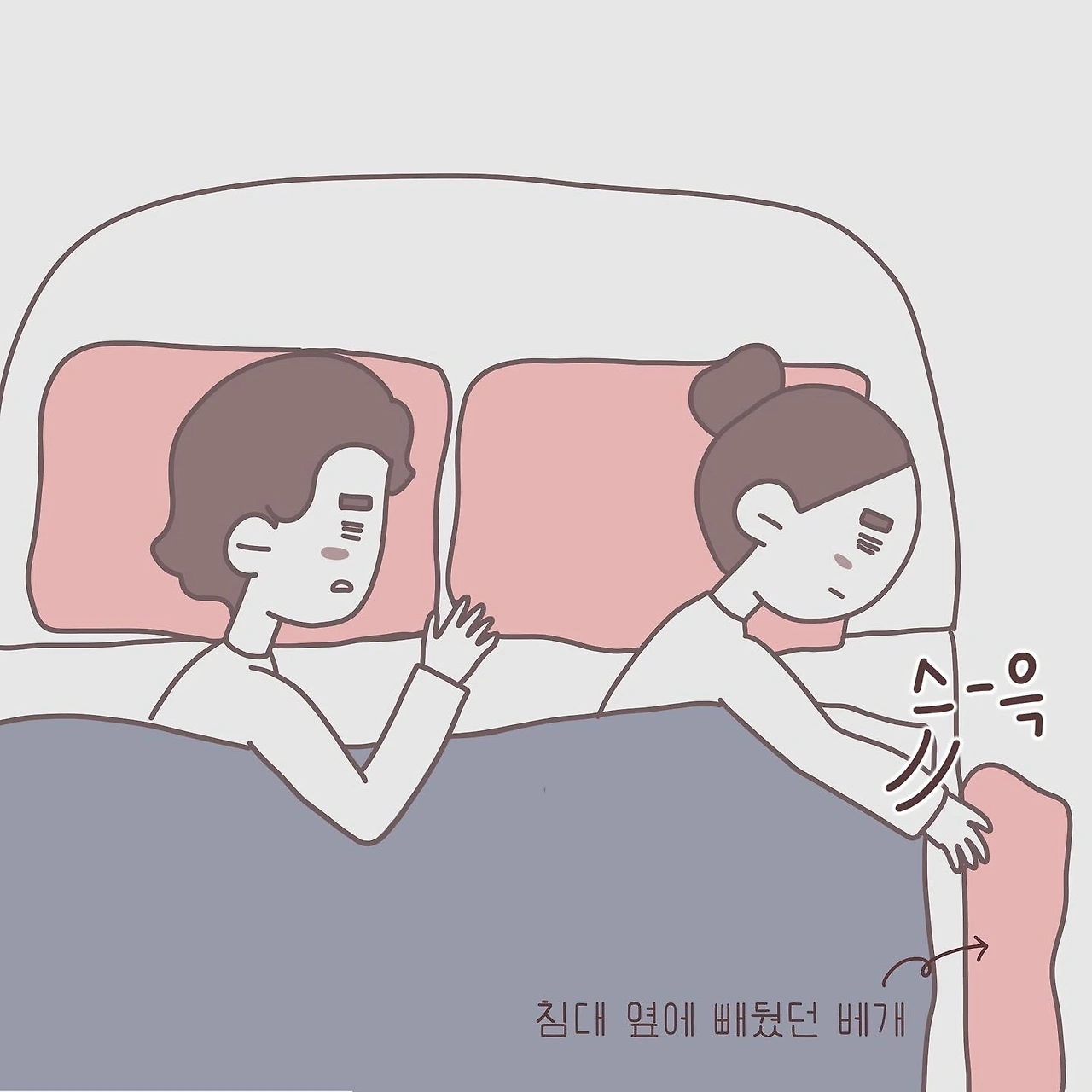 푹 잠들 때까지 기다렸다가 슬쩍 등 돌리고 자요.