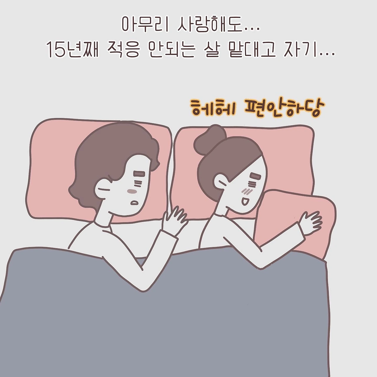 신혼 땐 남들처럼 품에 안겨서 자야 하는 줄 알고 팔베개도 베고 자봤지만