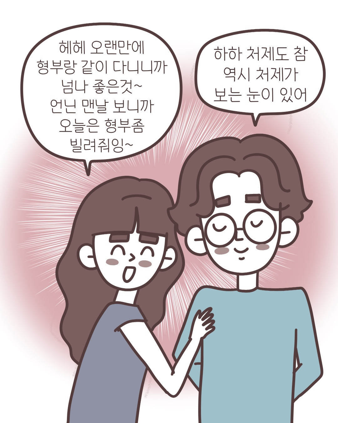 남편도 여동생을 자기 동생처럼 정말 귀여워하고 예뻐해줍니다.