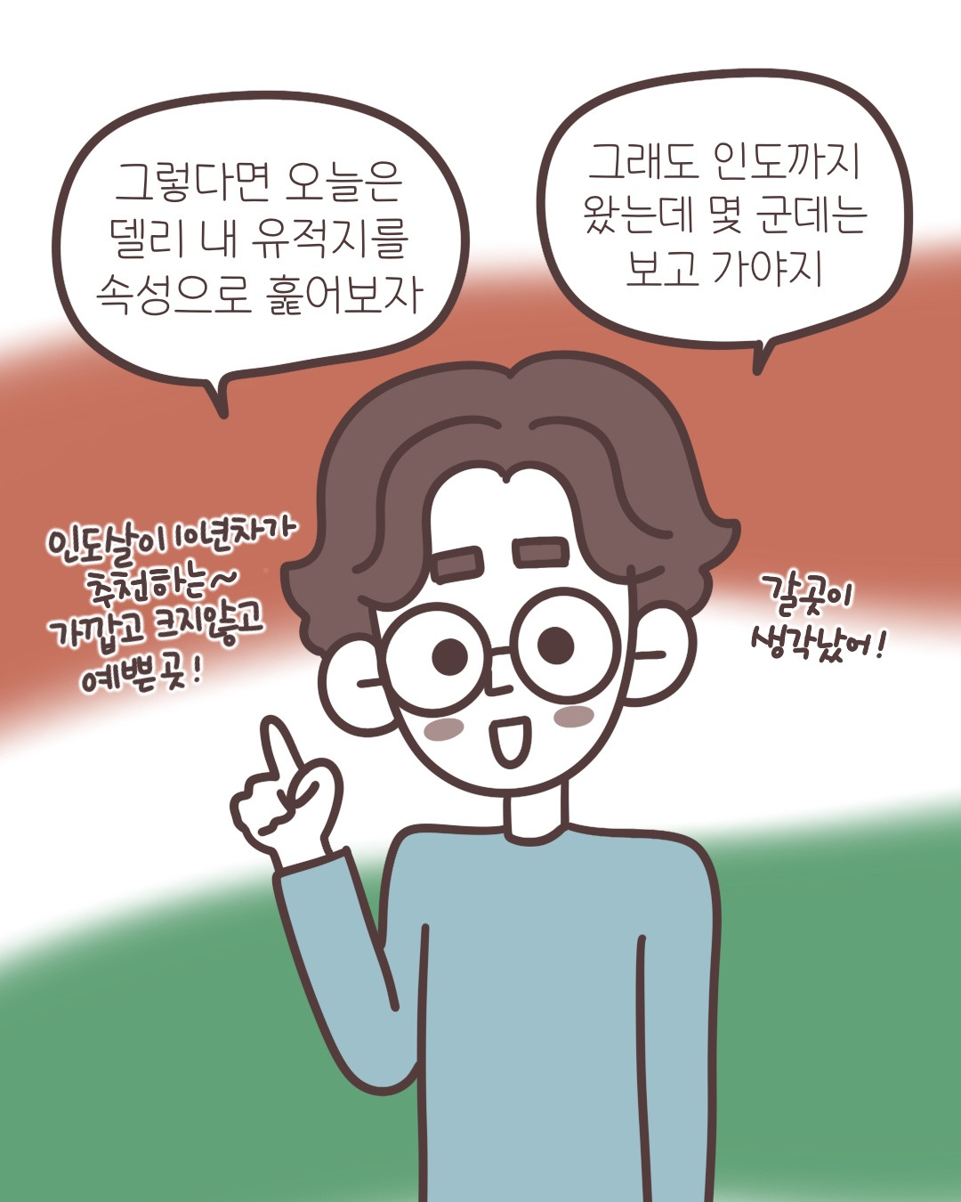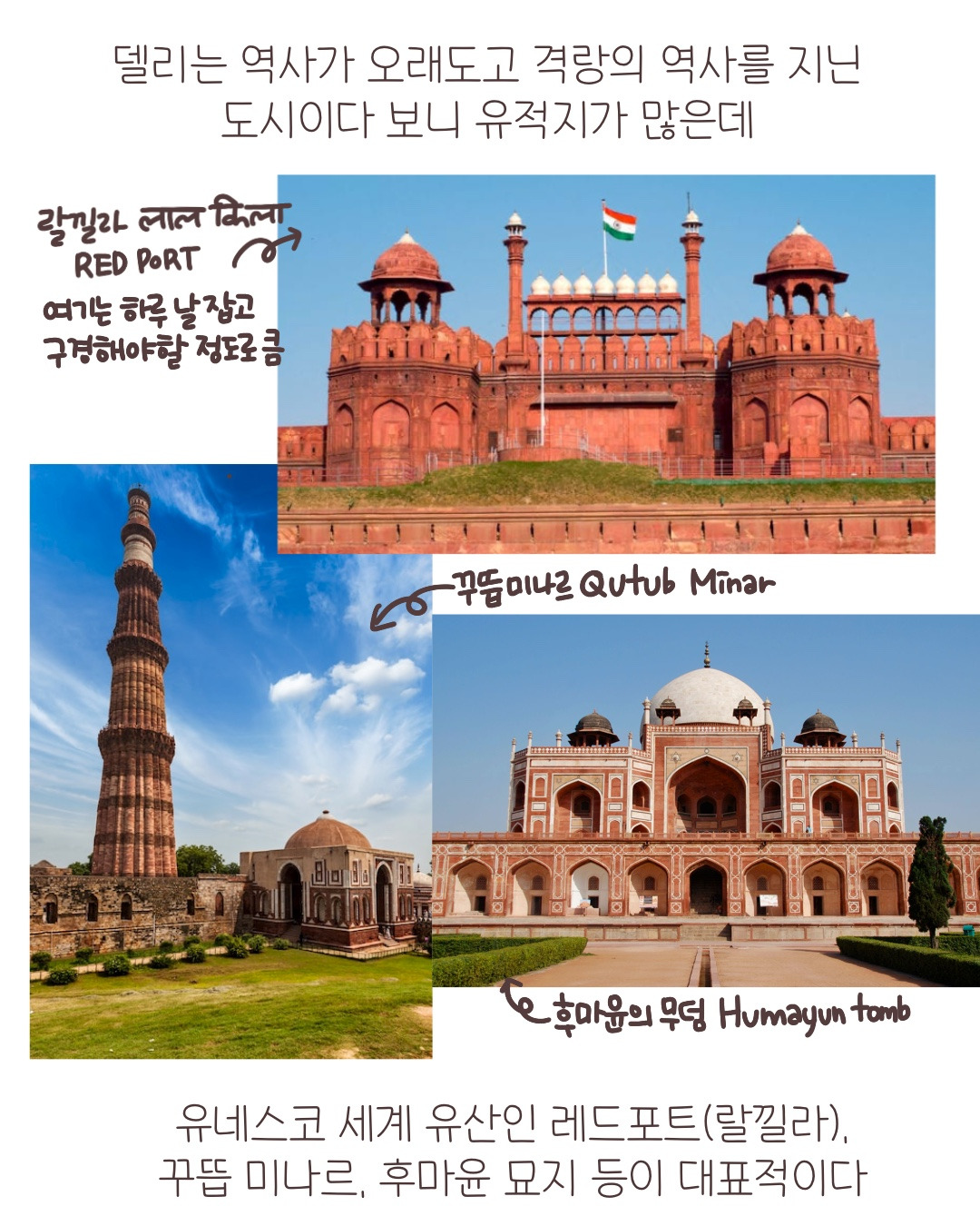 랄낄라(레드포트), 후마윤의 무덤, 꾸뜹 미나르, 마하트마 간디가 화장된 장소인 라즈가트, 인디아게이트 등 저도 인도 살면서 동생 덕분에 유적지 구경을 하게 되었던 것 같아요.