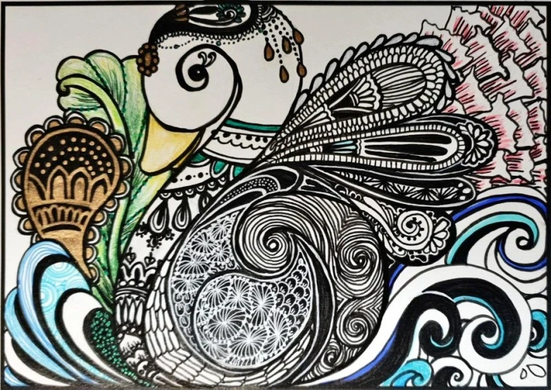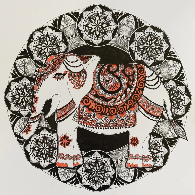 그리고 인도풍의 낙서가 저만의 독특한 그림이 되었고요.