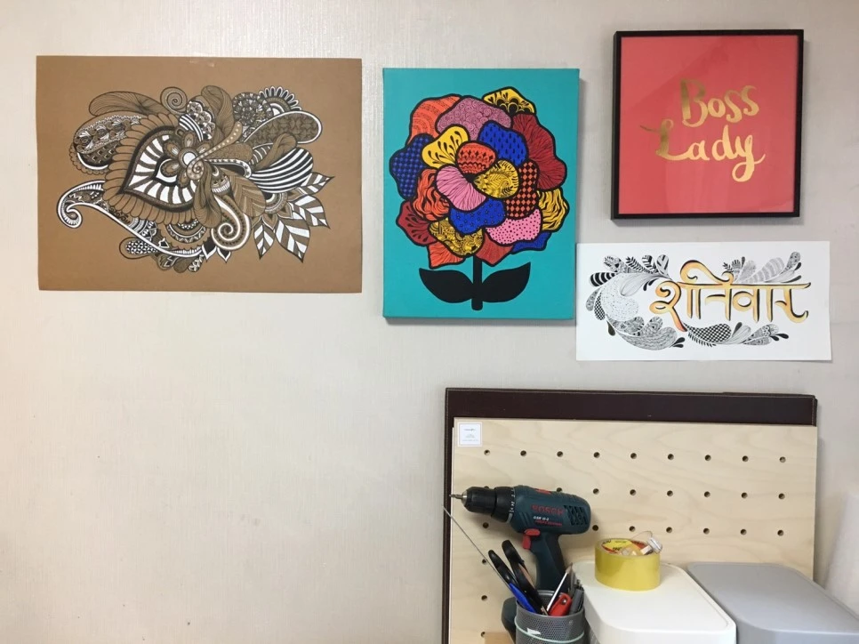 작업실로 쓰던 방 한켠은 그림으로 채워져가기 시작했고요