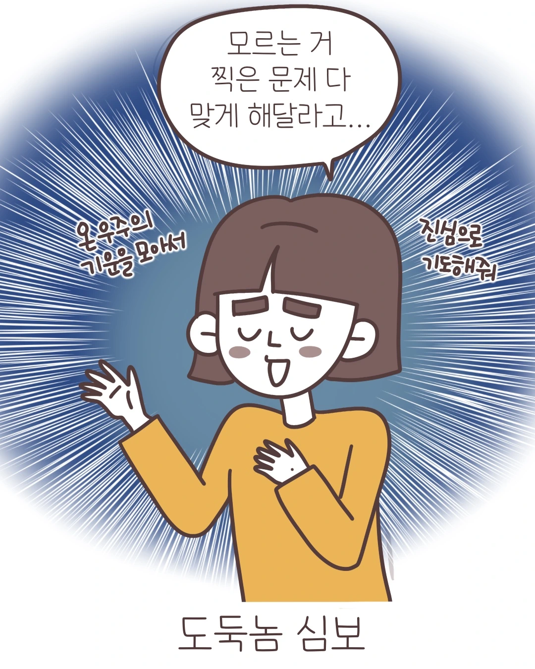 모르는 거 찍으면 운 좋게 맞았으면 좋겠다고 마음속으로 다들..희망하셨죠..?예...