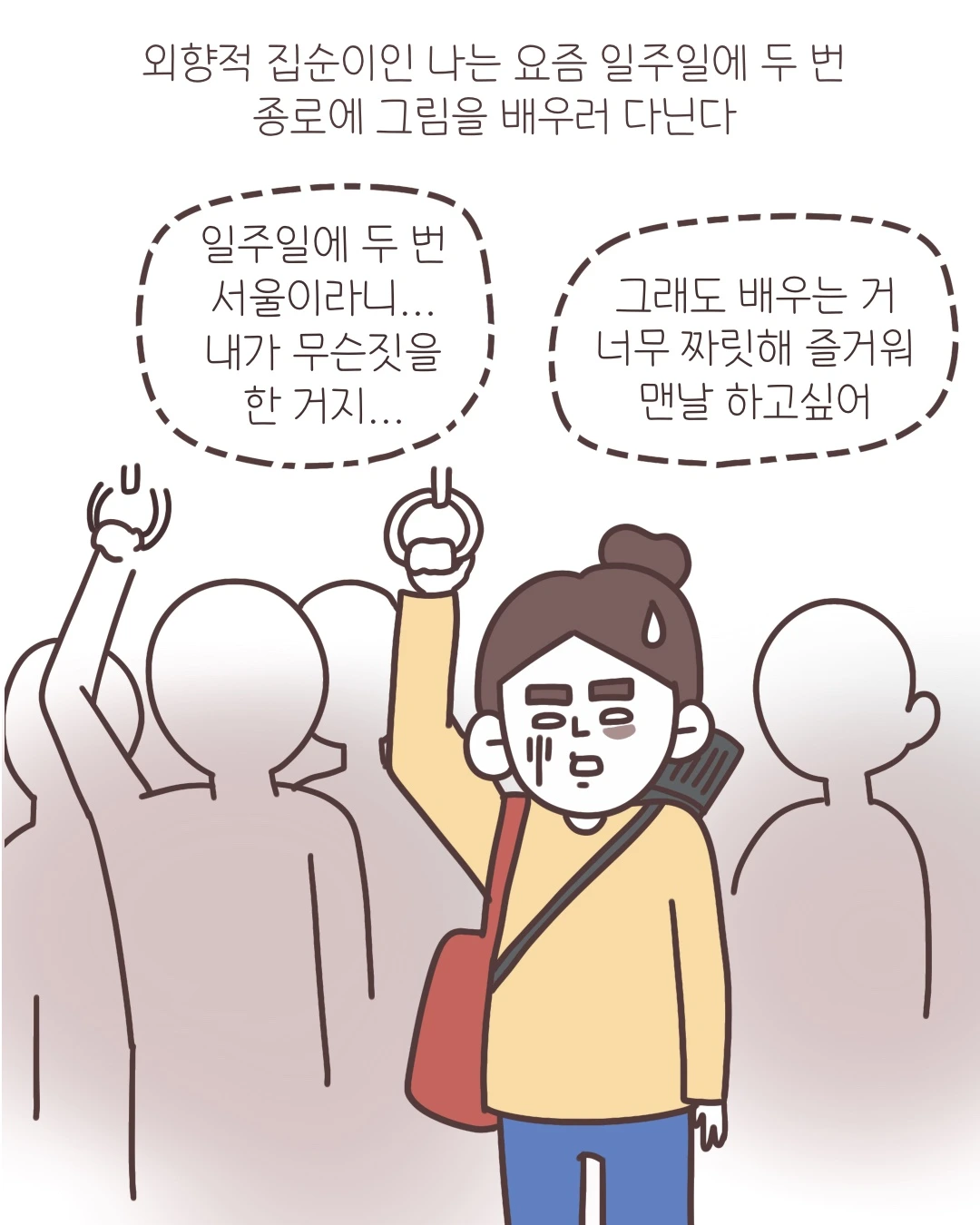 일주일에 두 번씩, 그림을 배우러 안산에서 서울까지 지하철을 타고 열심히 다니고 있어요.