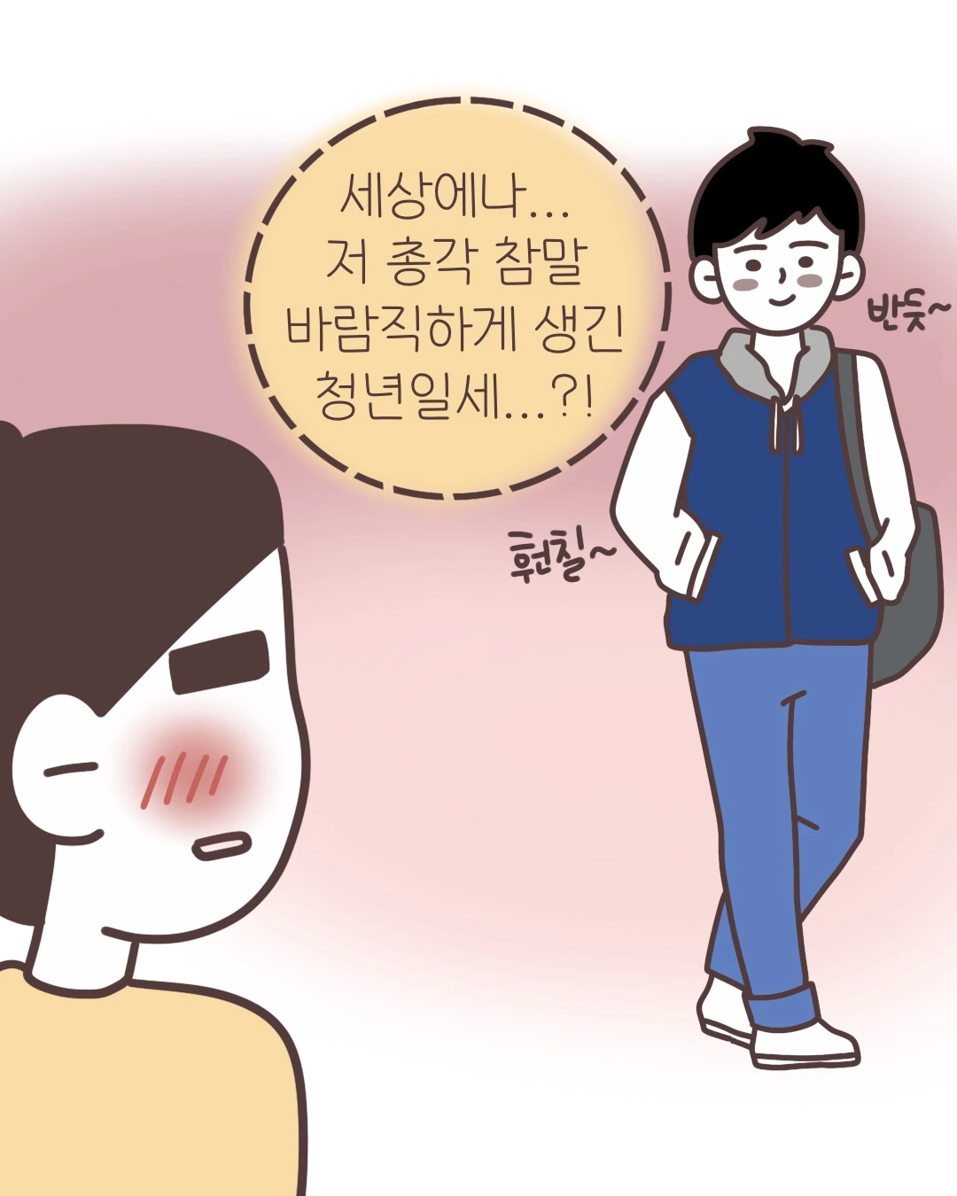 아니나 다를까, 너무나도 훤칠한 청년 하나가 걸어오고 있더라고요.