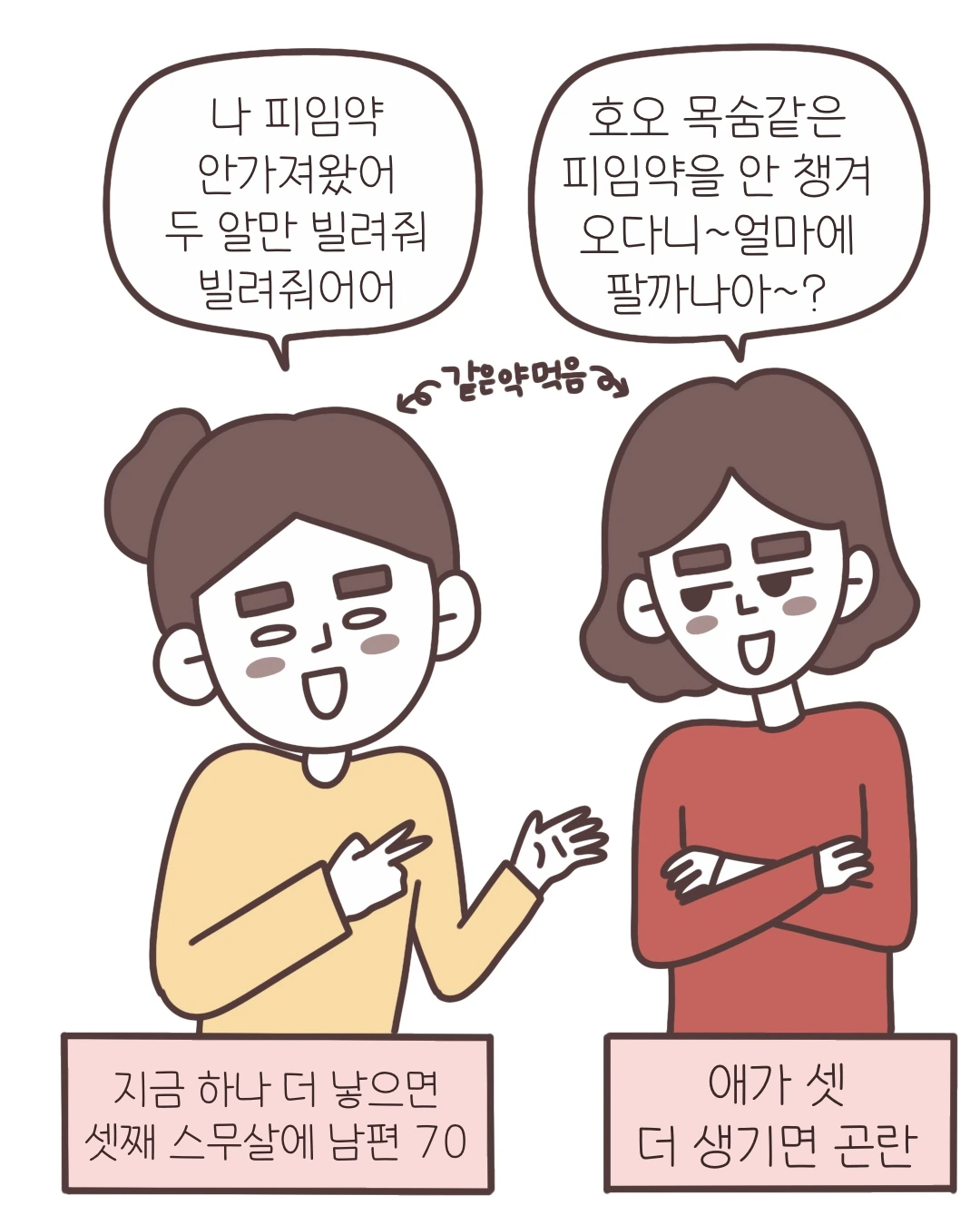 여동생도 이미 애가 셋인데다가 저와 마찬가지로 호르몬제로 조절을 해줘야 할 필요가 있어서