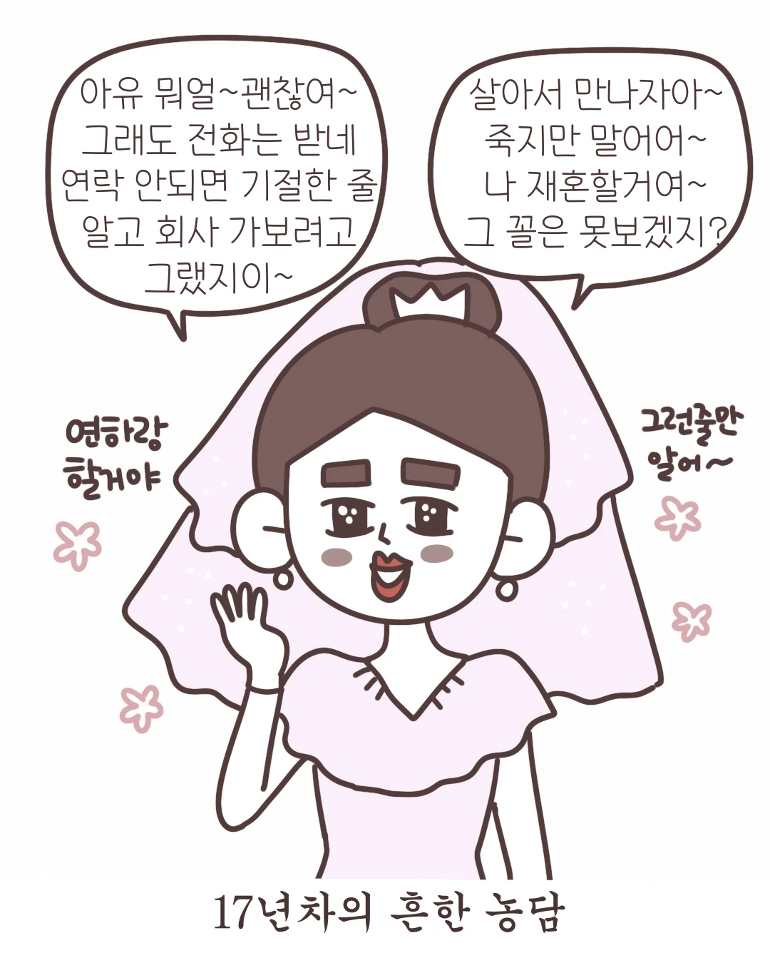 오래살어~~죽으면 안디야~~너무 일찍 가면 나 재혼할거여 연하랑~~