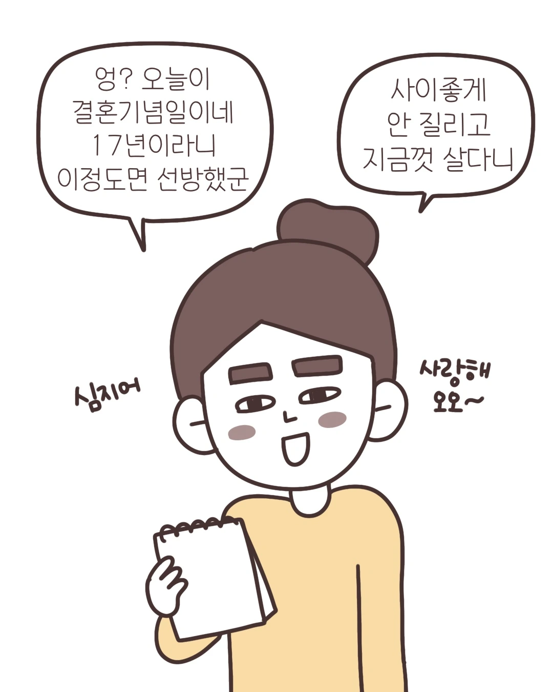 “아유~자기도 축하해~17년간 우리 그래도 잘 살았네