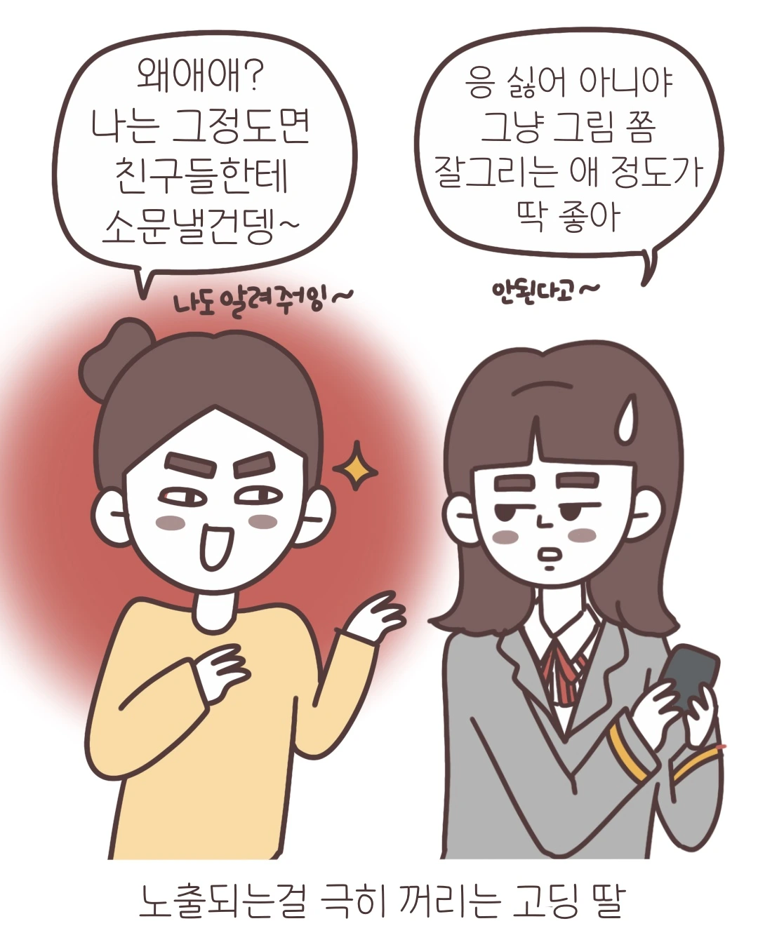 철저히 자기 사생활부터 취향, 학교생활에서의 평판과 본캐까지 숨기는 딸은