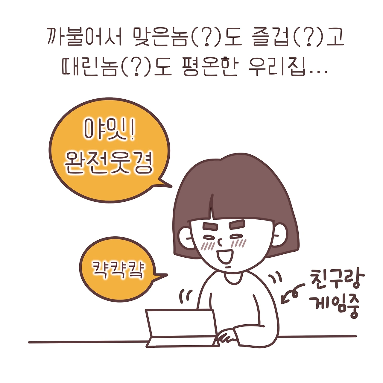 투닥투닥 일방적으로 맞고도 헤헤 거리며 누나랑 잘 노는 언제나 속 편한 아드님.