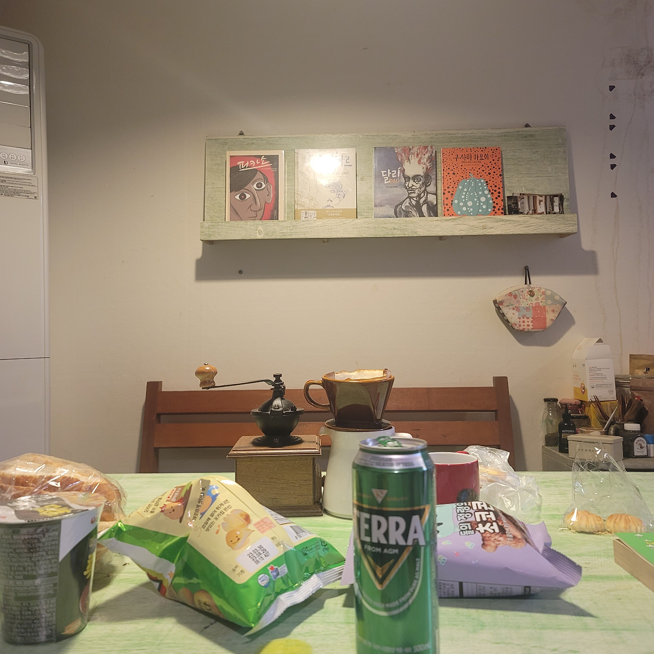 숨소리마저 적막한, 혼자만의 시간을 상상했던 나의 기대와 달리 자연스레 라면에 물을 부어주고서는 냉장고에서 아이스크림을 꺼내 식탁에 함께 앉는 사장님이 부담스럽다- 생각했다. 일요일까지 머물러야 했기에, 식사 이야기가 없어 혹시 몰라 혼자 먹으려고 역 앞에서 샀던 빵 몇개를 건넸다.
