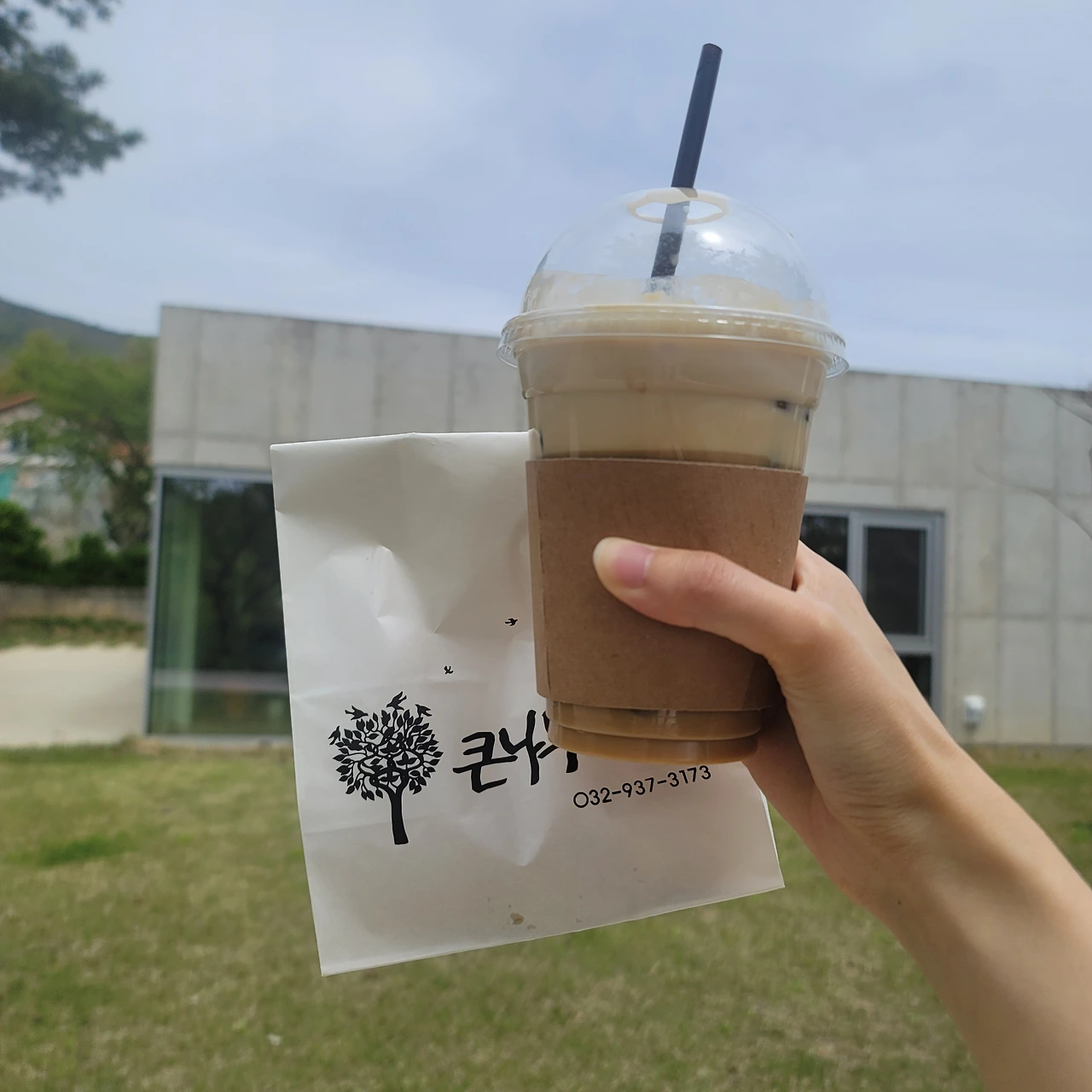 자기들끼리 부엌으로 가서 이야기하자길래 나는 산책길을 찾아 보겠노라며 길을 나섰다. 사장님은 그럴래?하고는 자신의 텃밭을 밟고 남의 집 앞 길을 통해 카페에 빠르게 가는 길을 알려주었다. 카페에서 오른쪽으로 틀면 산책로가 시작된다는 표시가 있다고 했다. 나는 일단 라떼가 고팠으므로, 카페에 들어가서 먼저 커피를 테이크아웃 하기로 했다. 다 무너져가는 원래부터 살았던 듯 싶은 초가집과 누가 봐도 새로 들어온 지 얼마 안 된 신입의 반짝이는 정돈된 주택들을 몇 개 거치고, 오골계와 닭이 싸우는 소리도 거치고, 웬 할아버지가 자신의 밭에 물을 뿌리며 은근히 나를 쳐다보는 시선도 거치자 5분 만에 '카페 큰나무'라는 팻말을 찾았다. 말 그대로 팻말 바로 뒤에는 꽃나무처럼 큰 나무가 우뚝 서 있었다. 카페 건물 옆에 똑같이 생긴 1층 건물들이 4개 있었다. 펜션을 함께 하는건가, 가족 단위 독채 펜션이라면 다음에는 저기에 묵어도 괜찮겠다 생각하며 카페 문을 열었다.
