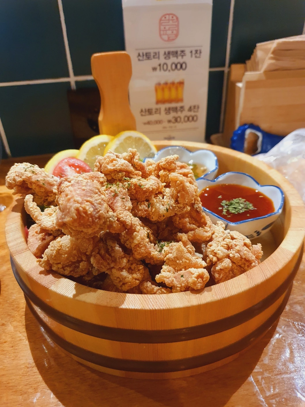정곡을 푹 찌른 유은이 포크로 치킨 뒷다리도 폭 찍는다. 그리고는 맛있게도 뜯는다. 그리고, 뜯기는 것 또한 류별임을.