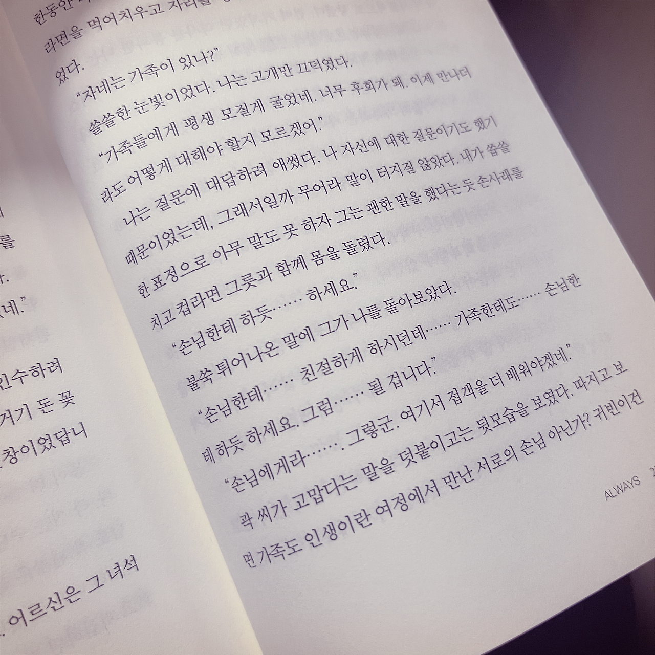 소설을 처음 읽는 사람에게도 좋은 경험이 될 것 같아 추천하고 싶고 최근 읽었던 책 중 가장 사람 사는 얘기였던 책이라 다시 한번 추천하고 싶은 책이다. :)
