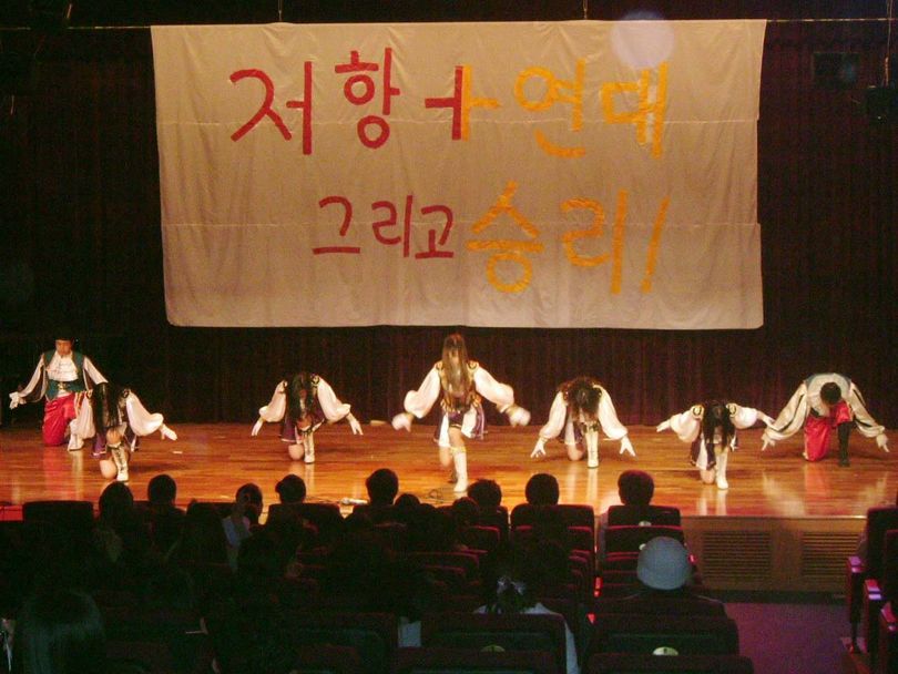 인문대 캠퍼스의 과방은 지하에 벌집처럼 몰려있었다. 과방은 학생들이 공강이나 쉬는 쉬간에 머무를 수 있는 작은 공간인데 복도를 중심으로 양 쪽에 국문학과, 경영학과, 영문학과 등등이 복도식 아파트처럼 다닥다닥 붙어있었다. 폭이 2미터 남짓한 복도는 늘 쾌쾌한 담배와 곰팡이 냄새, 그리고 응원단들의 땀냄새가 풍겼다. 각 과 응원단들이 음악을 틀려면 전기 콘센트가 필요했기에 과방 복도에서 동작 연습을 했기 때문이다. 저마다 자신의 과방 앞 복도에서 CD플레이어 볼륨을 최대치로 높였다.파이팅 넘치는 음악들이 다투듯 과방 복도를 메웠다. 학교는 응원단들이 튼 음악소리와 기합소리가 뒤엉켜 늘 활기로 넘쳤다.
