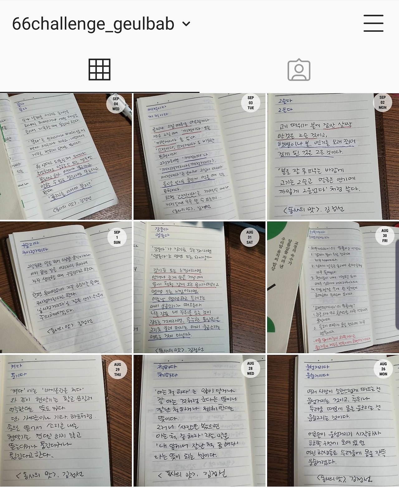 매일 필사를 하고 인스타그램에도 인증하고 있다