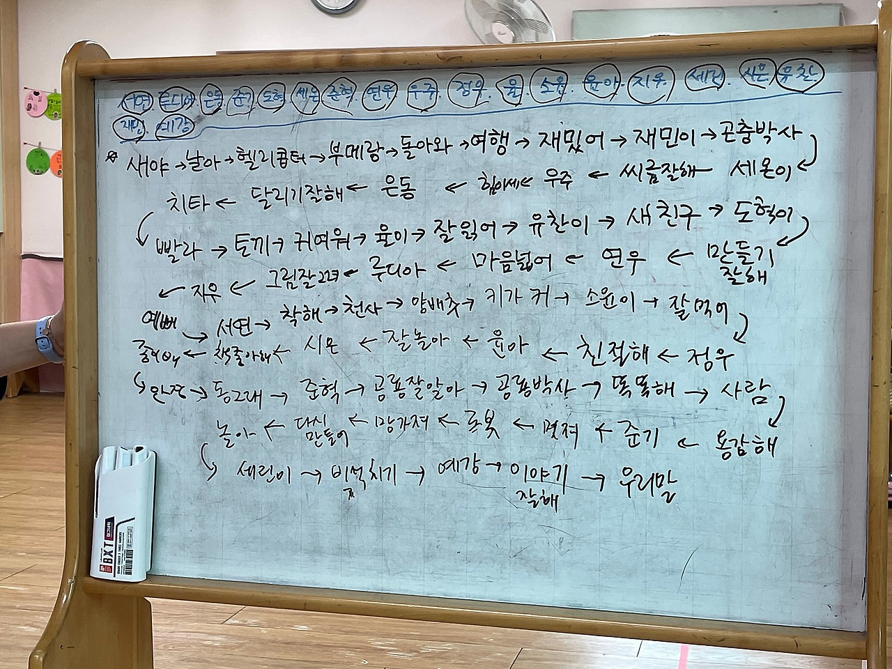 이른바 무한반복할 수 있도록 만든 노래다. 아이들 입에서 노래가 그치지 않기를 바라는 마음이랄까.올해도 우리 말놀이는 이렇게 마무리가 되었다. '한글 읽고 쓰기'라는 눈앞의 목표는 이루지 못했을지라도, 아이들 삶에 노래가 깃들기를 바라고, 이름의 소중함을 간직하고, 말과 글과 얼이 서로 아름답게 어우러지는 초석을 다지는 시간이었기를 바란다. 아니, 아니, 이런 거창한 목표가 이루어지지 않아도 좋다. 아이들이 만화영화 주제가나 나이에 맞지 않는 아이돌 노래 말고, 어른들이 주입하는 이념이 들어 있는 노래도 말고, 그저 자연 속에서 자연스럽게 나오는 그런 노래들이 깃든 삶을 살 수만 있다면, 그깟 글자 따위는 조금 늦게 배우면 어떠랴.