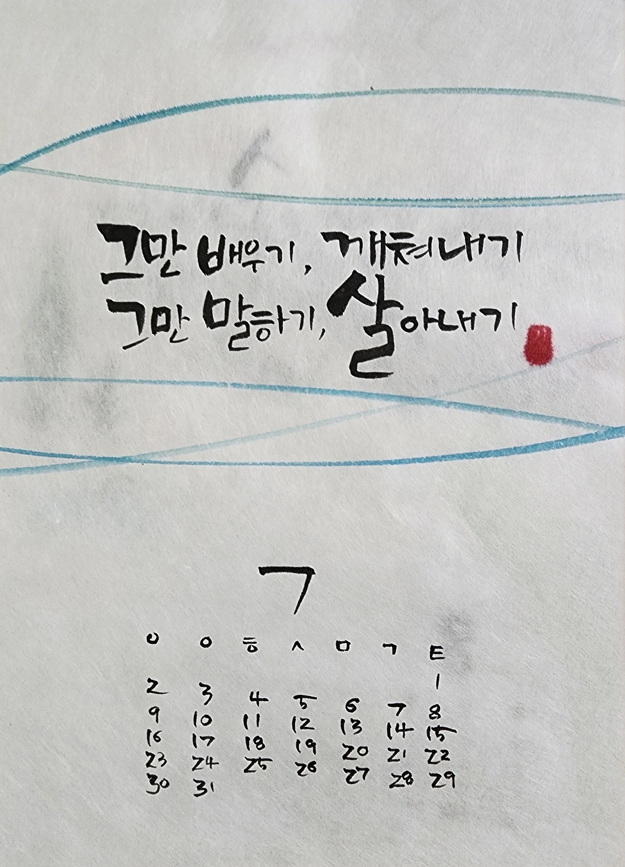 박노해 시인의 걷는 독서에서 인용한 글귀를 7월 달력에 써넣었더랬다. 배우고 말하기보다는 깨쳐내고 살아내야 할 때다. 책은 그만 사고, 읽고 만나야 할 때고.