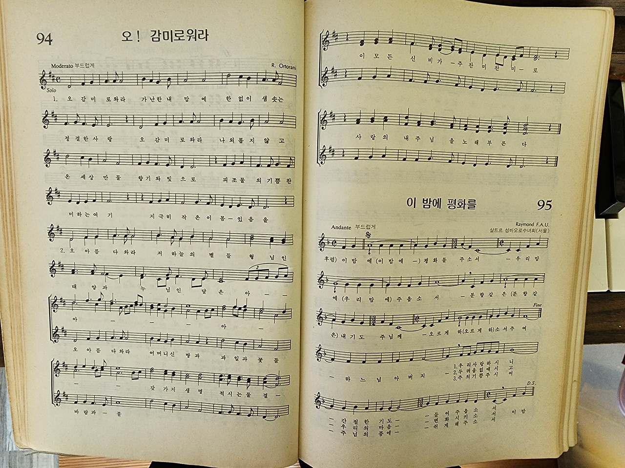 오, 감미로워라가난한 내 맘에 한없이 샘솟는 정결한 사랑오, 감미로워라나 외롭지 않고온 세상 만물 향기와 빛으로 피조물의 기쁨 찬미하는 여기지극히 작은 이 몸 있음을.오, 아름다워라 저 하늘의 별들형님인 태양과 누님인 달은오, 아름다워라어머니신 땅과 과일과 꽃들 바람과 불갖가지 생명 적시는 물결이 모든 신비가 주 찬미, 찬미로사랑의 내 주님을 노래 부른다.
