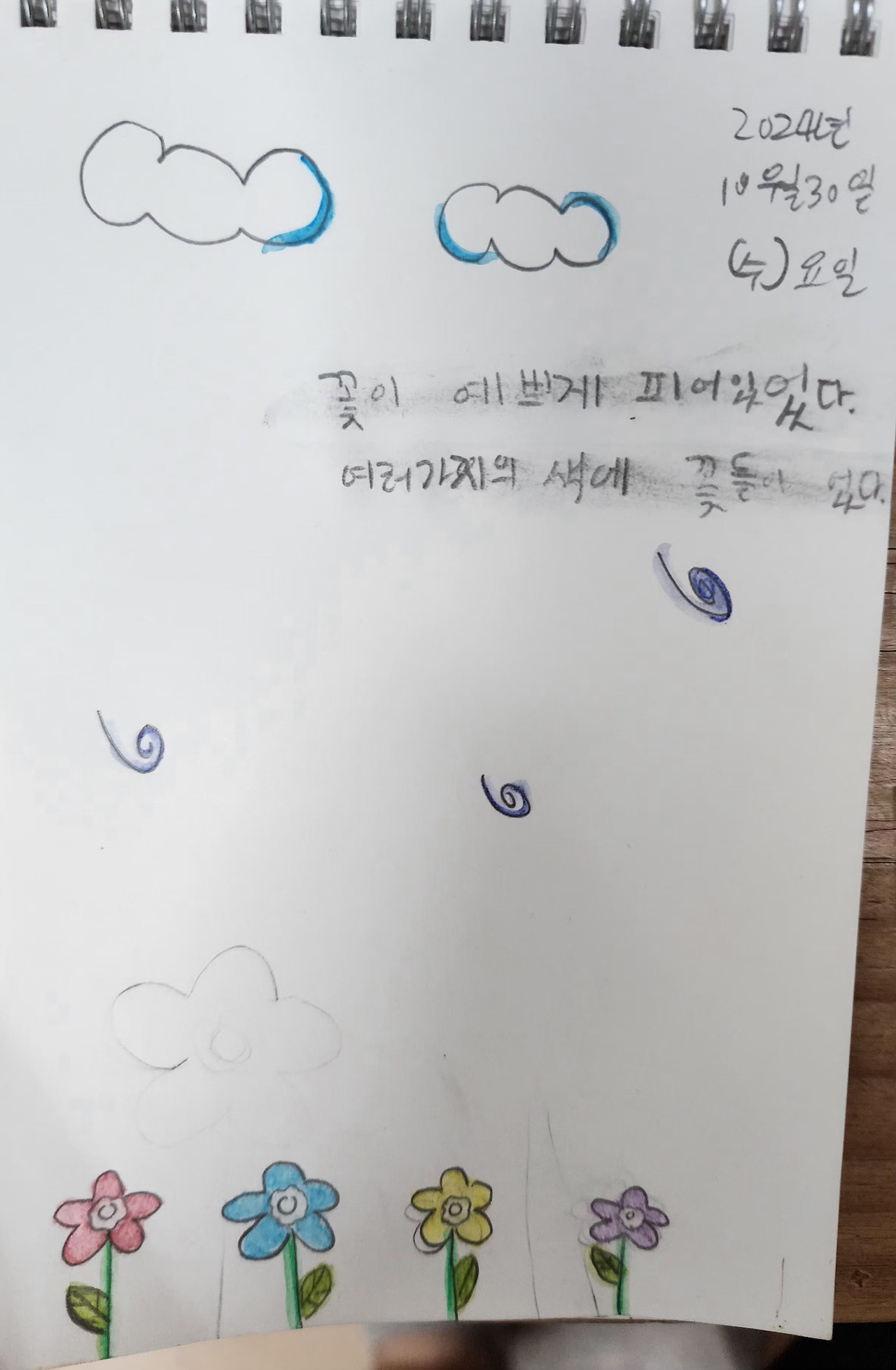 배추가 주연이라면 무는 조연입니다. 그러나 작물을 탐내는 벌레는 오로지 아이들 손끝으로만 잡는지라 벌레들의 공격을 당해낼 수가 없습니다. 무청도 속수무책으로 갉아먹히는 중이지요. 구멍이 숭숭 뚫렸는데, 주연 데뷔를 하고 싶어 마음 급한 무는 자꾸 땅 위로 얼굴을 내밀려하네요. "무가 빼꼼 나왔다. 앞으로 훨씬 열정적으로 키워야겠다." 주연이(아이 이름이 주연이에요^^)의 글을 읽으니, 주연이는 앞으로 더 열정적으로 벌레를 소탕하려나 봅니다. 큰 눈을 더 크게 뜨고 소매를 걷어부친 주연이 모습이 눈에 선합니다.
